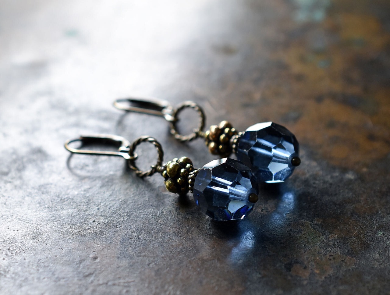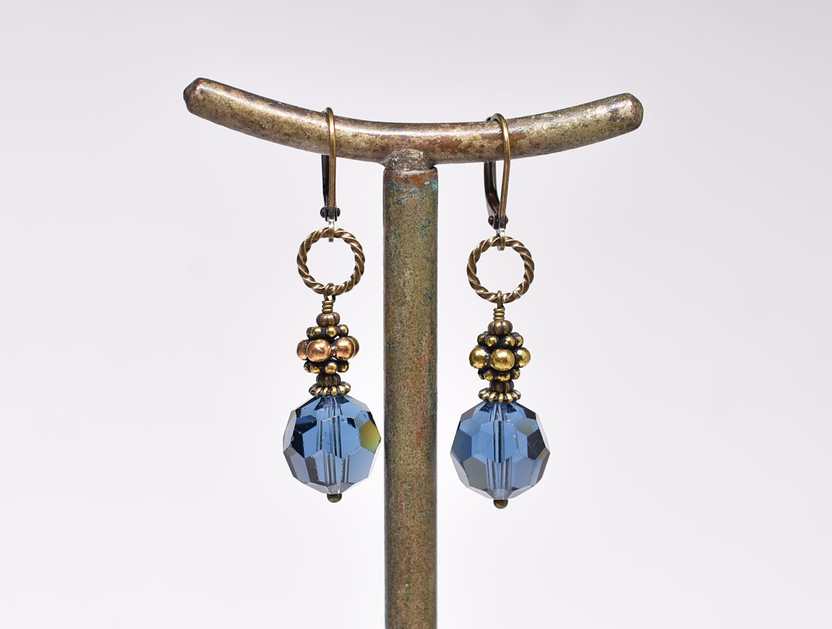 アイアンブルーチェコヴィンテージビーズとぷっくりブラスビーズのピアス