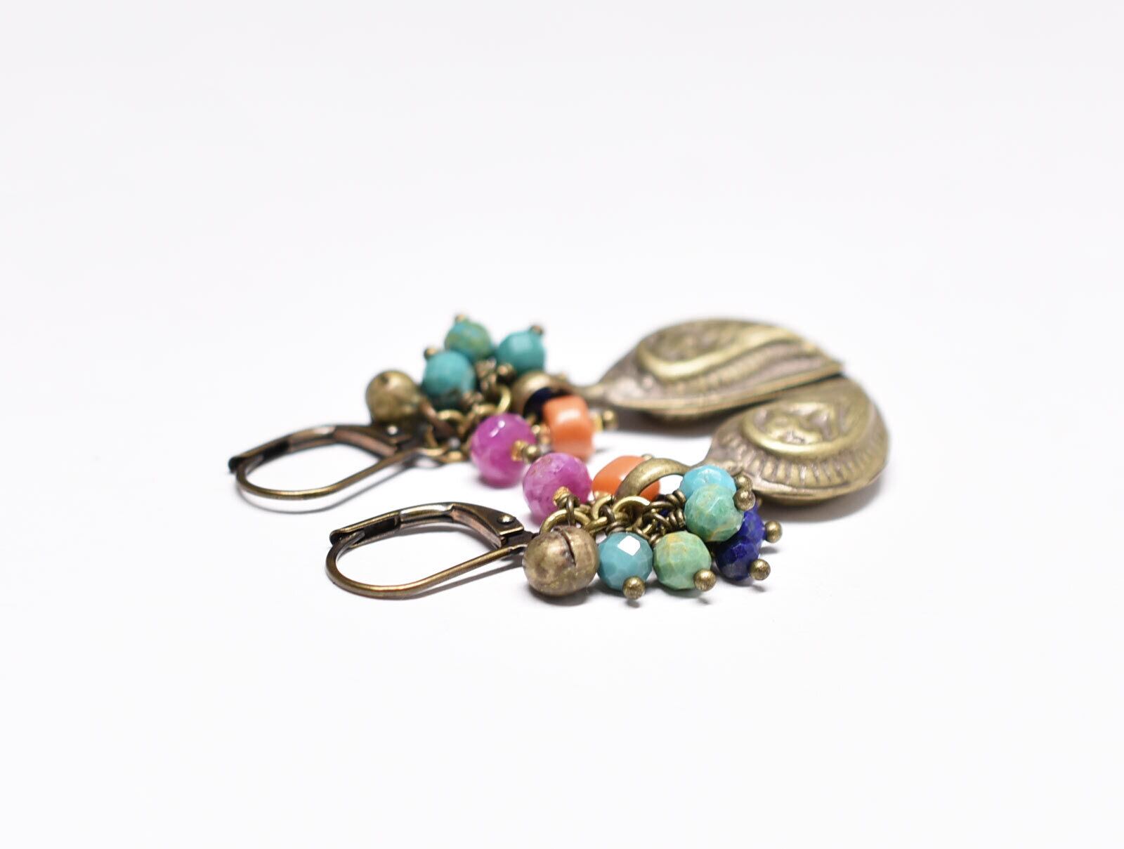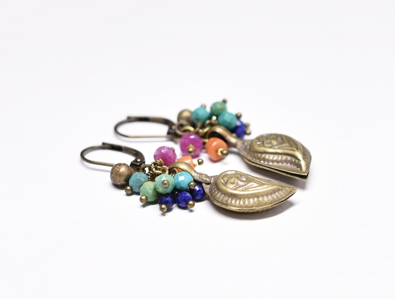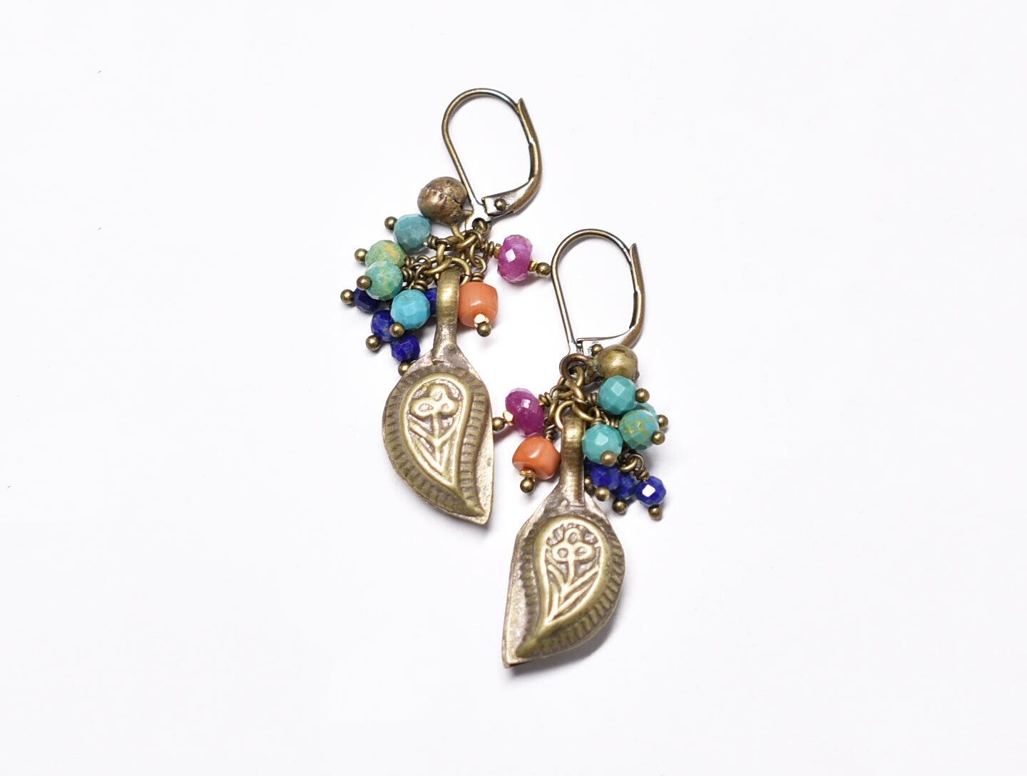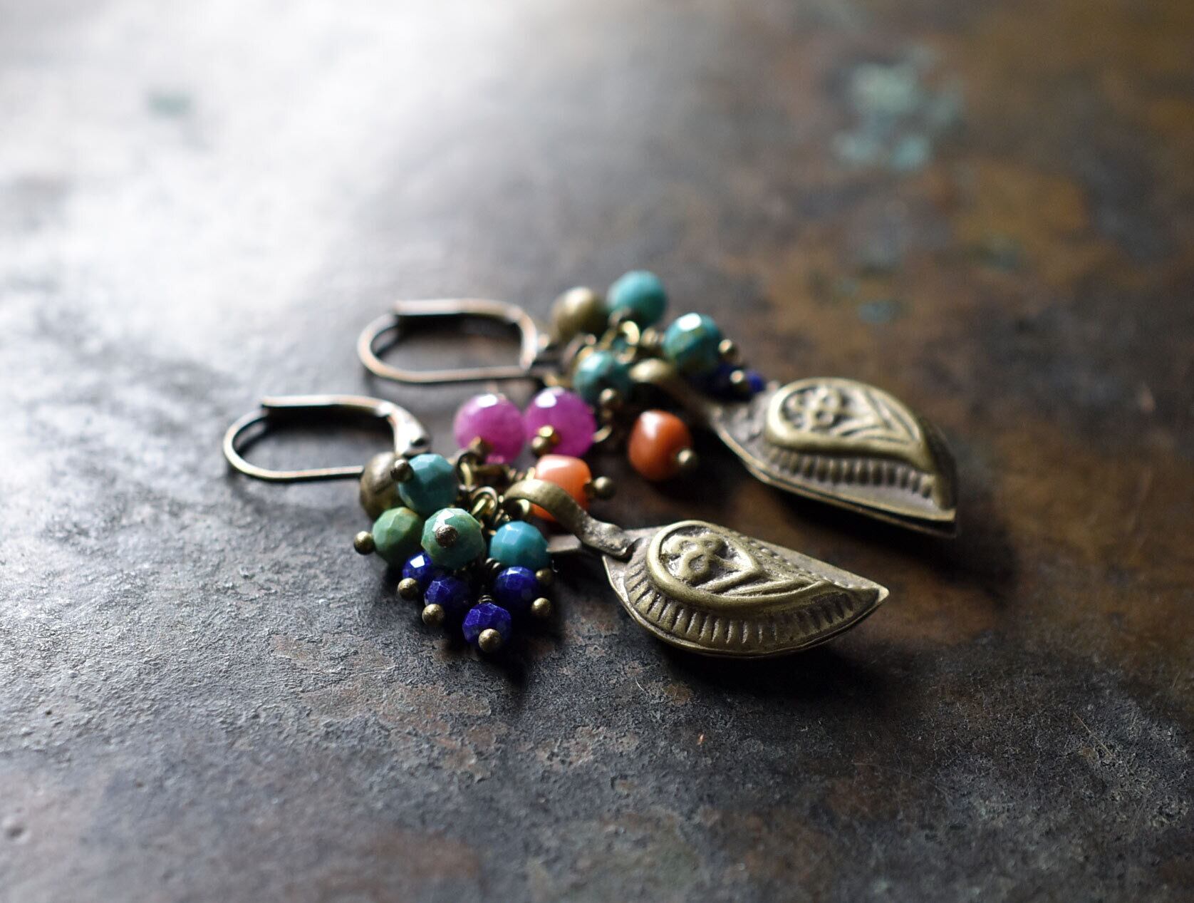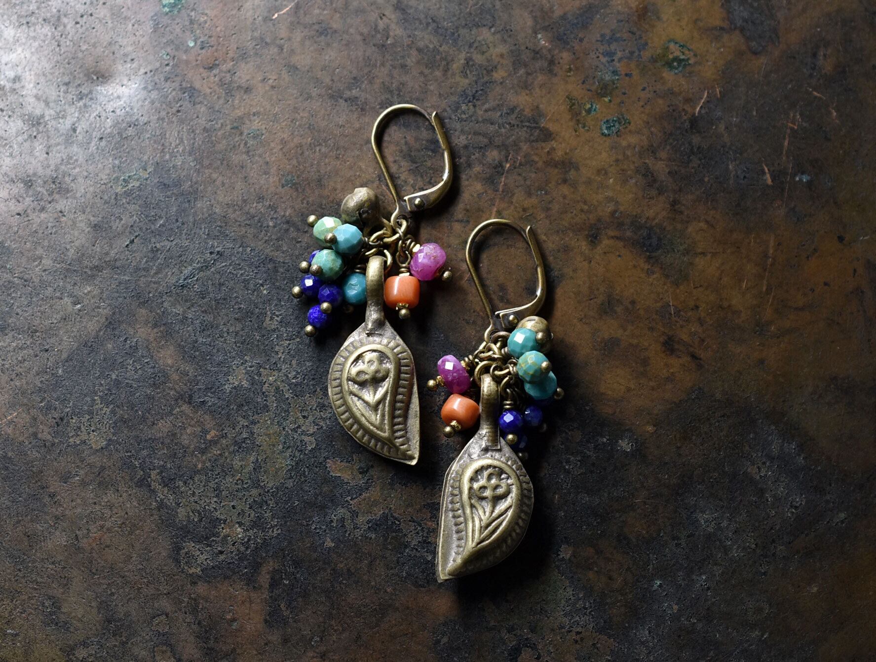 アフガニスタンメタルとたわわなラピス&ターコイズ、ルビー、oldネパールコーラル、民族鈴のピアス