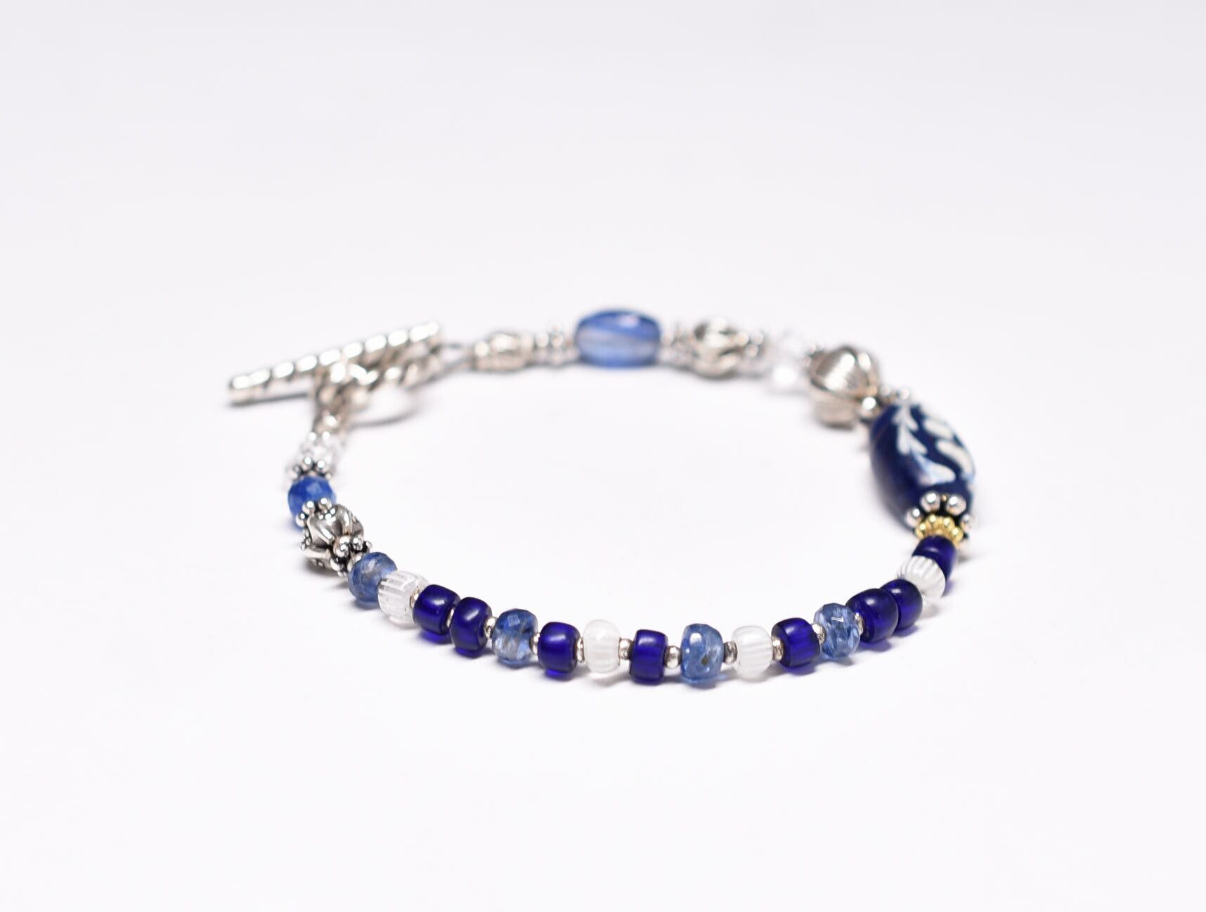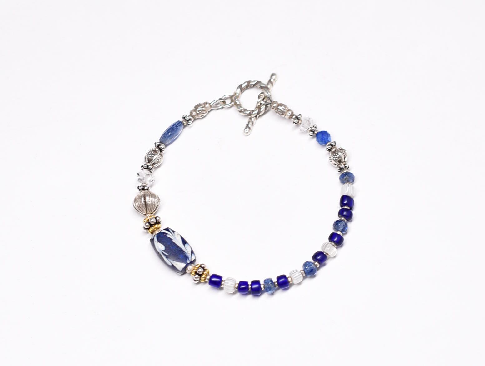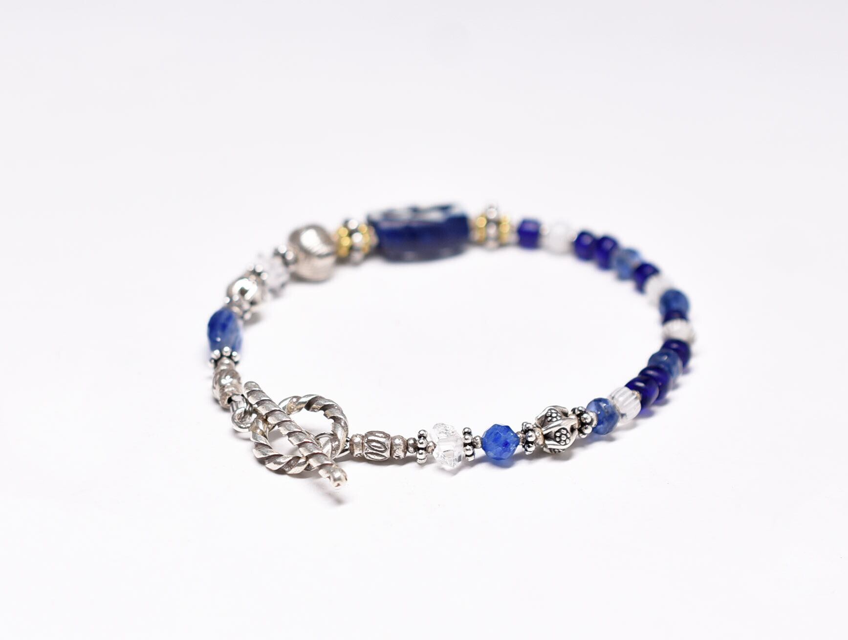 ヴェネチア瑠璃色アラベスクとカレンシルバー、カイヤナイト、グーズベリー、ハーキマーダイヤモンドのブレス