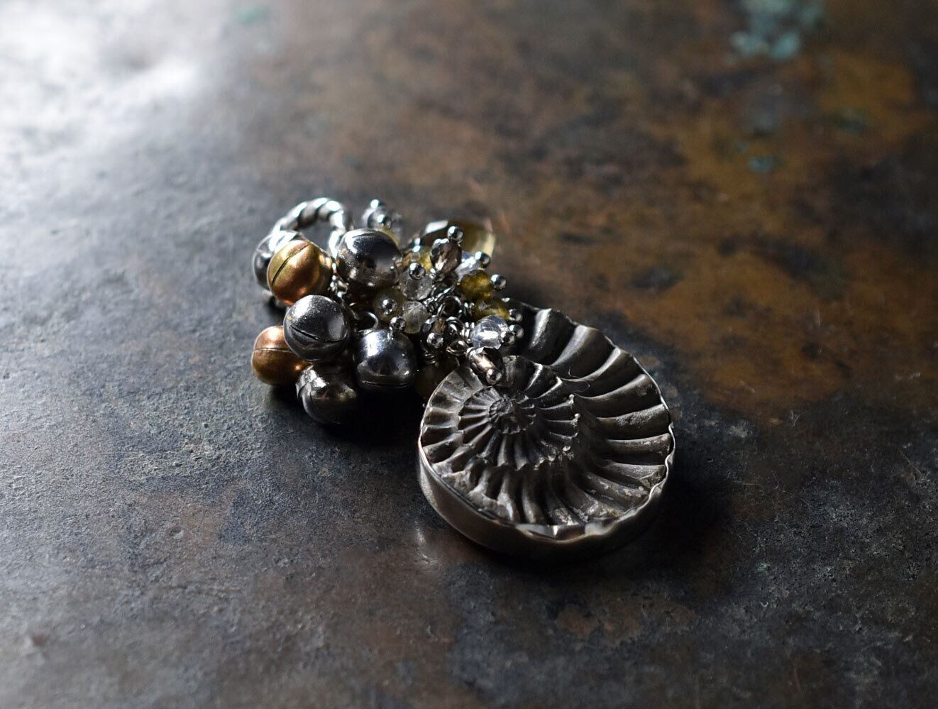 シルバーで囲われた、パイライトアンモナイトをメインにしました。