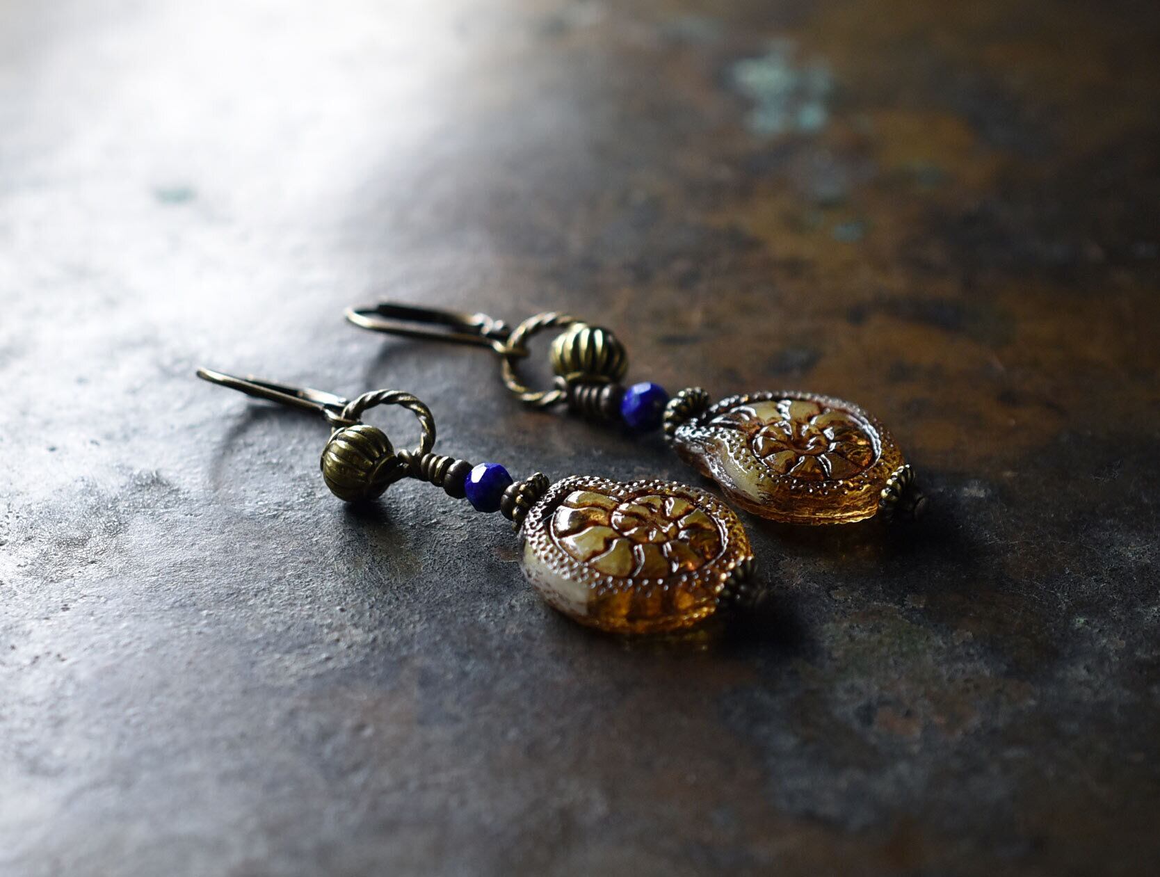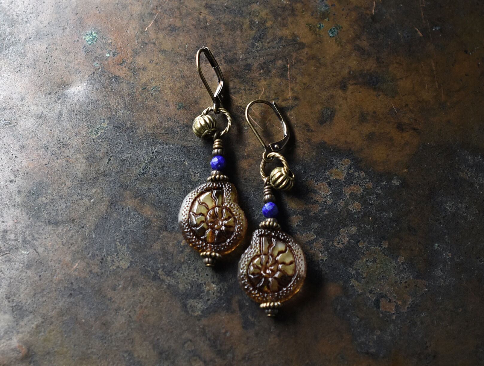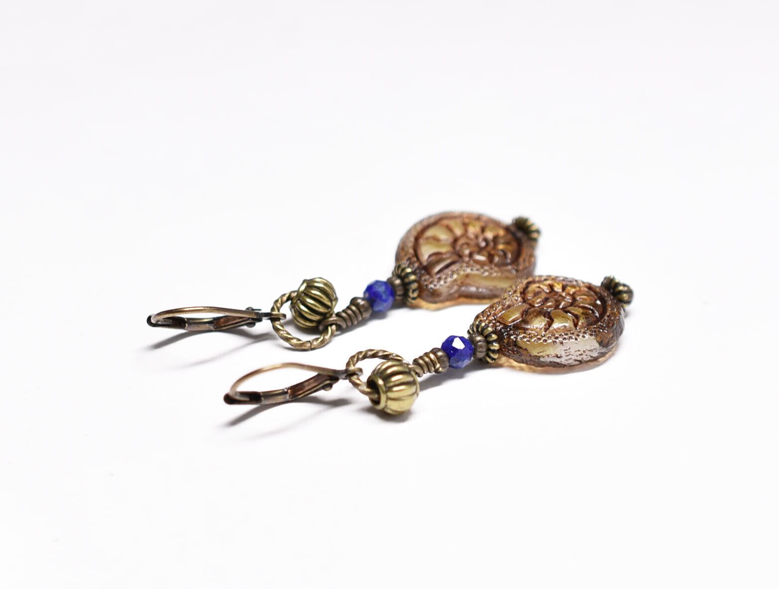 アンモナイトチェコビーズとラピスのピアス