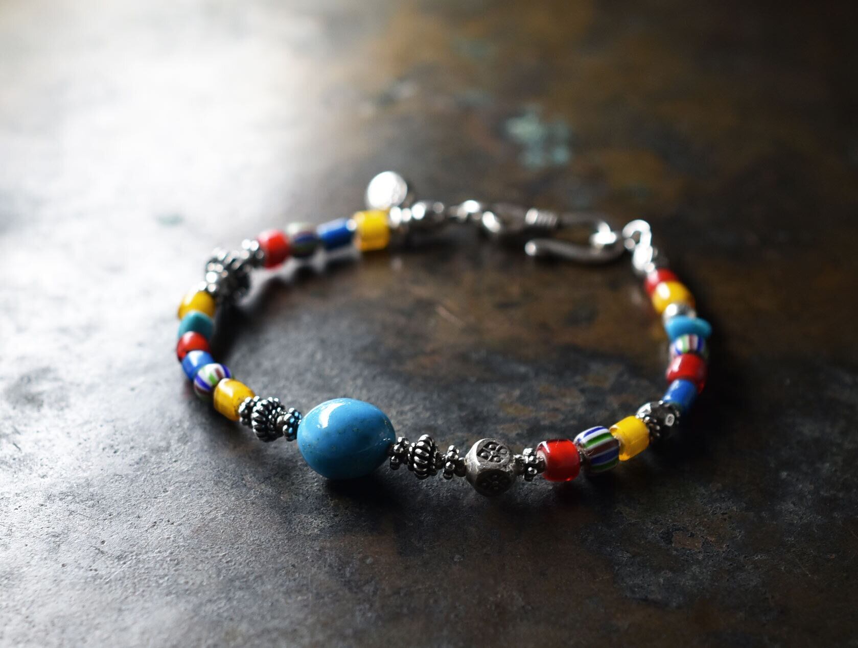 シルバーアクセサリーとの相性もばっちりのブレスです。