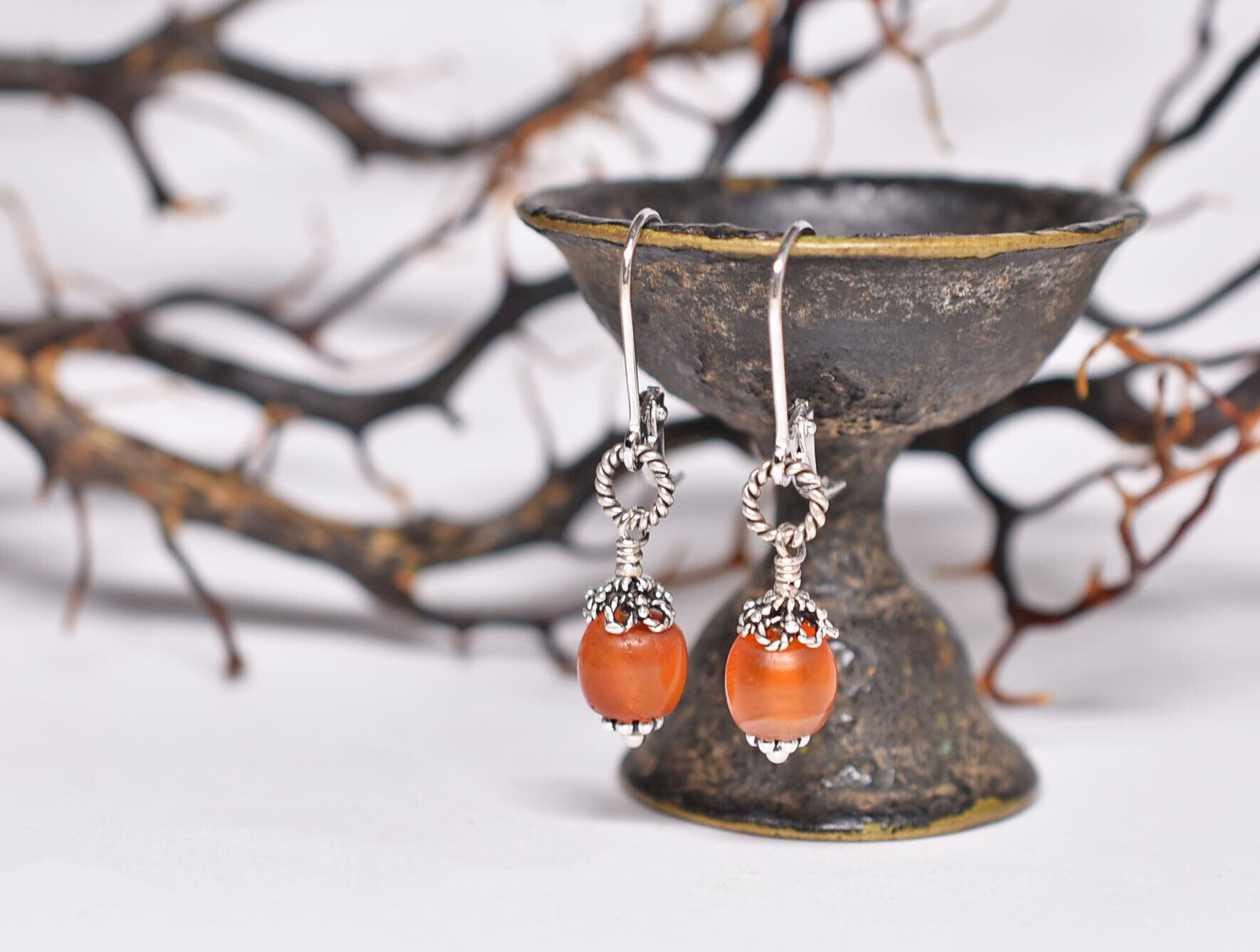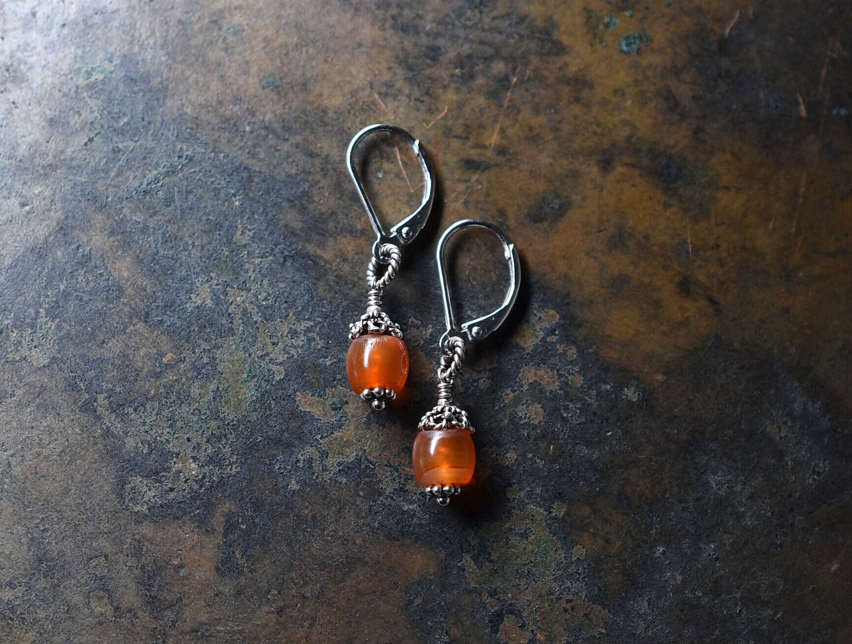 橙色ミゾーラムカーネリアンの一粒ピアス