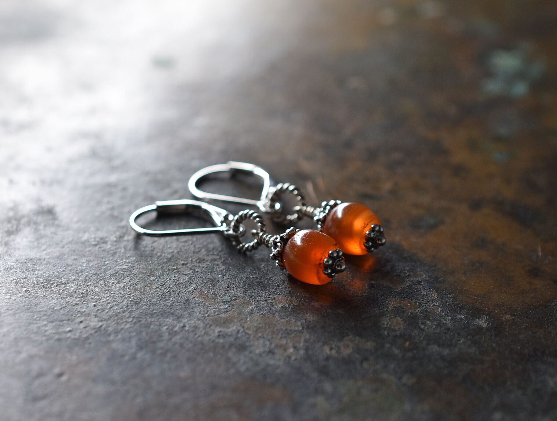 橙色ミゾーラムカーネリアンを繋いだ小さな一粒ピアスです。