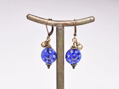 聖者のビーズと小さな民族鈴のピアス(ブルー)