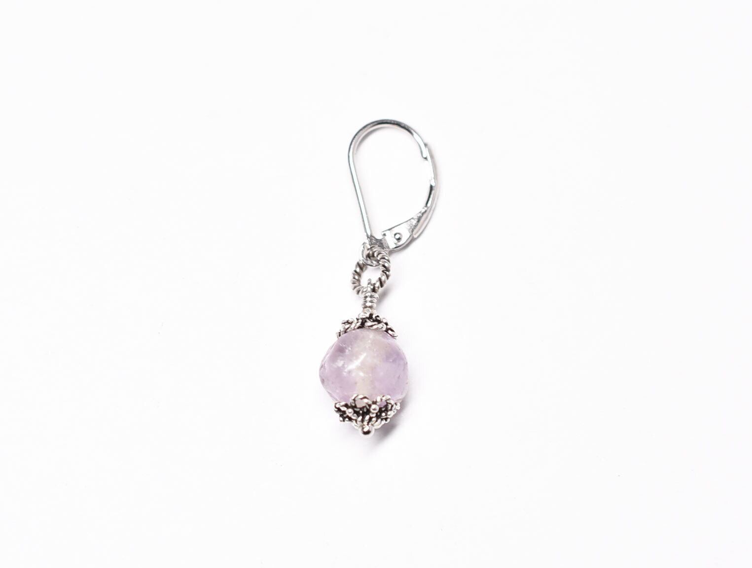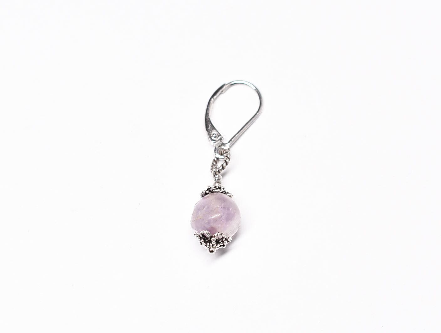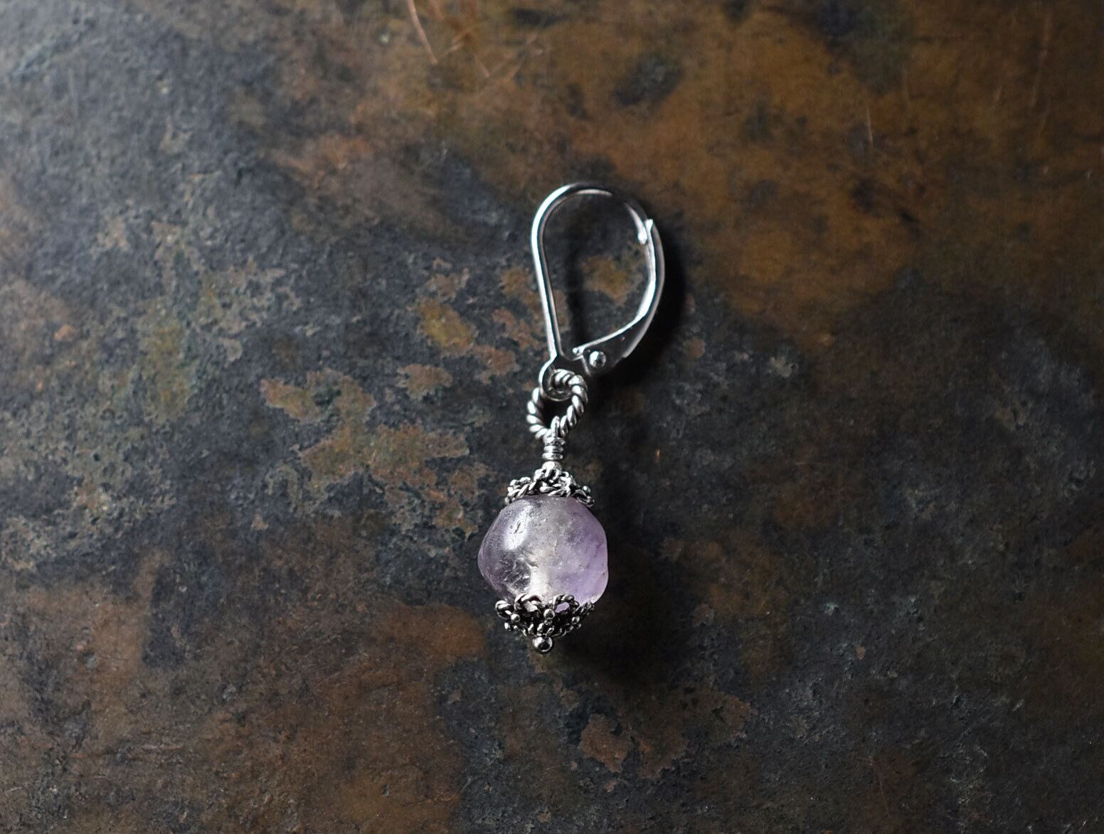 コロンとした古代アメジストを繋いだ片耳のピアスです。