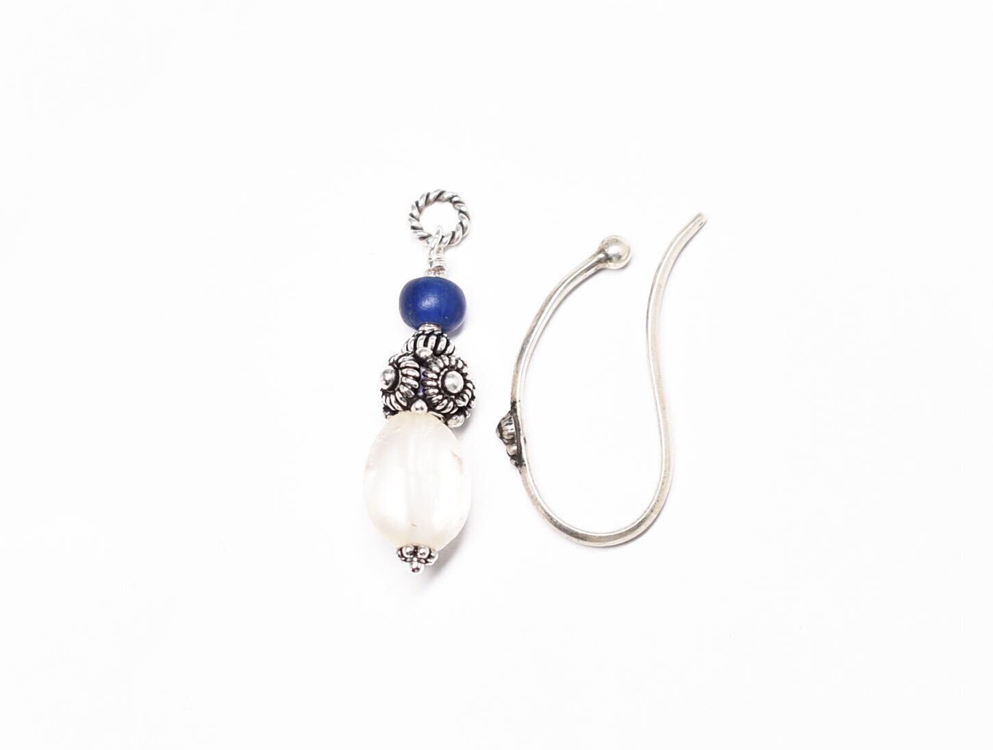 古代水晶とダークブルーアンティークビーズの繊細細工のシルバービーズを繋いだインドシルバーイヤーカフです。