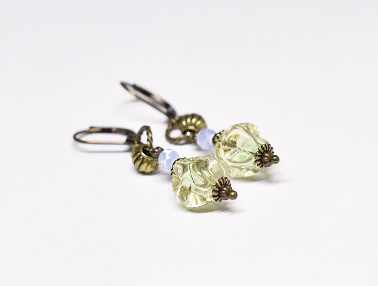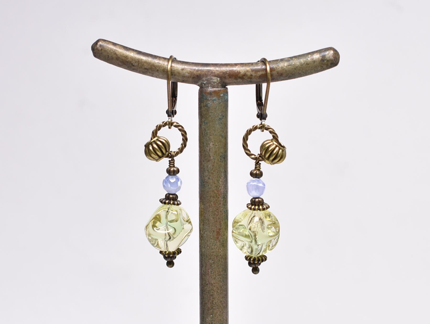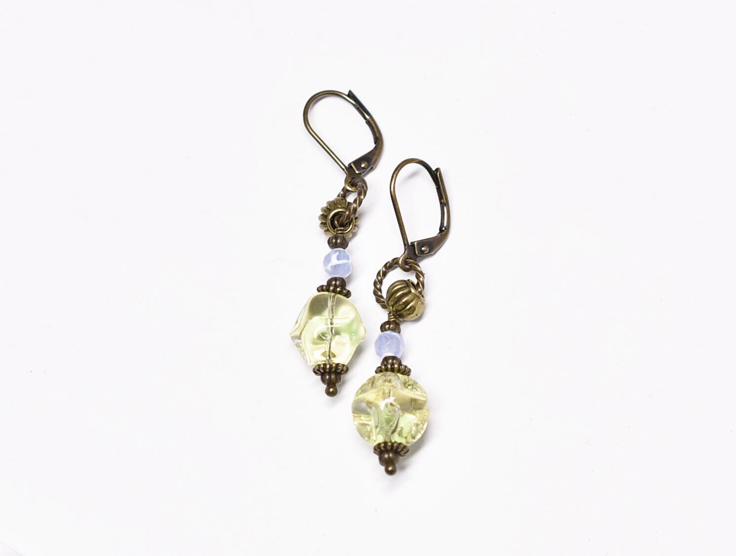 イエロー&グリーンドイツヴィンテージビーズとブルー瑪瑙のピアス