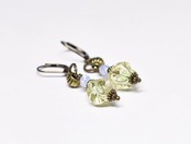 イエロー&グリーンドイツヴィンテージビーズとブルー瑪瑙を繋いだピアスです。