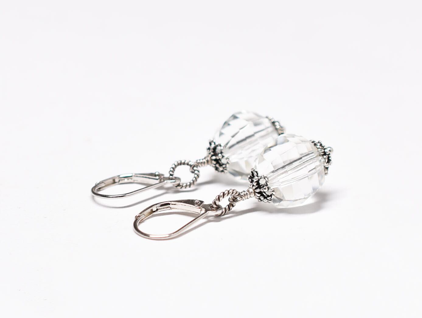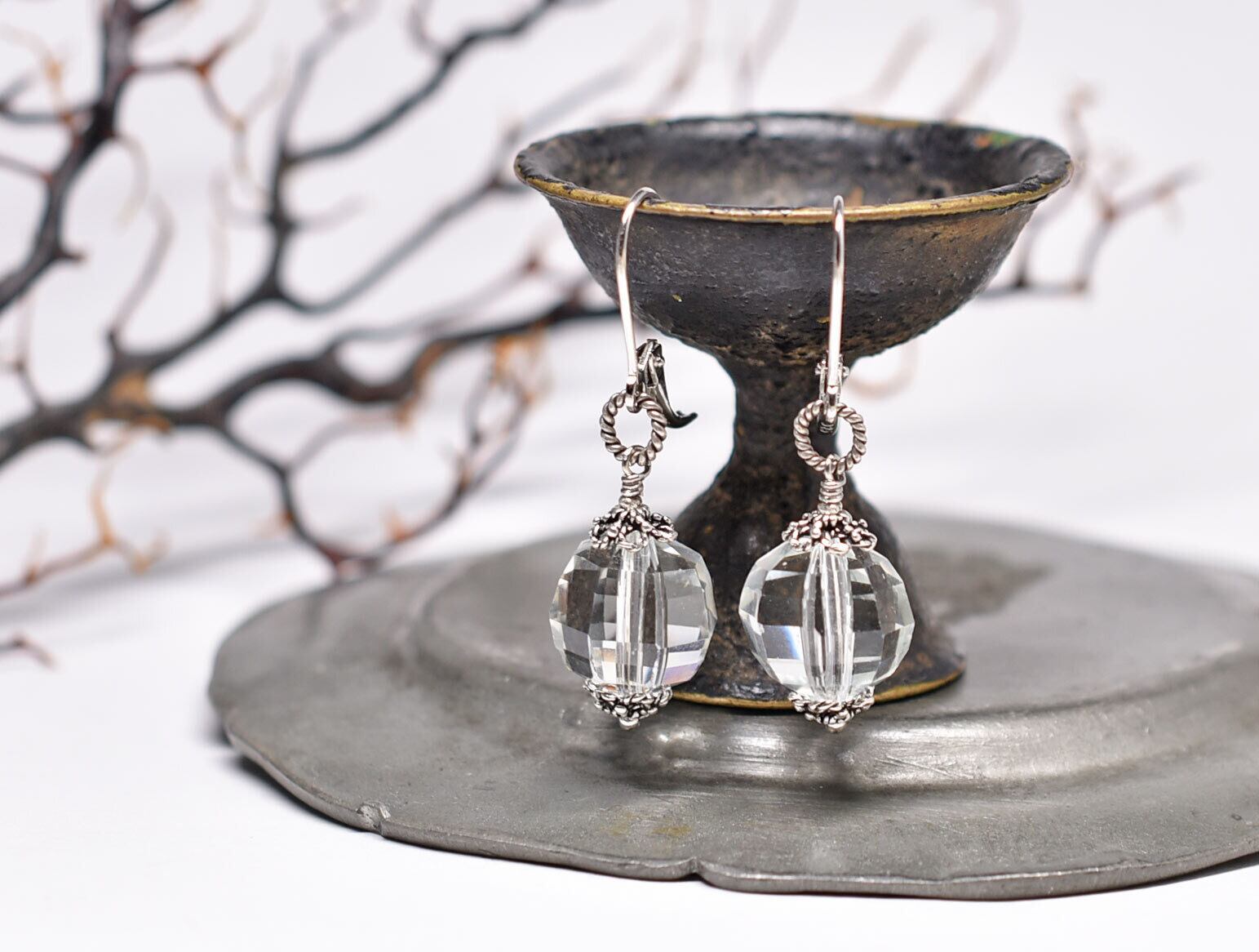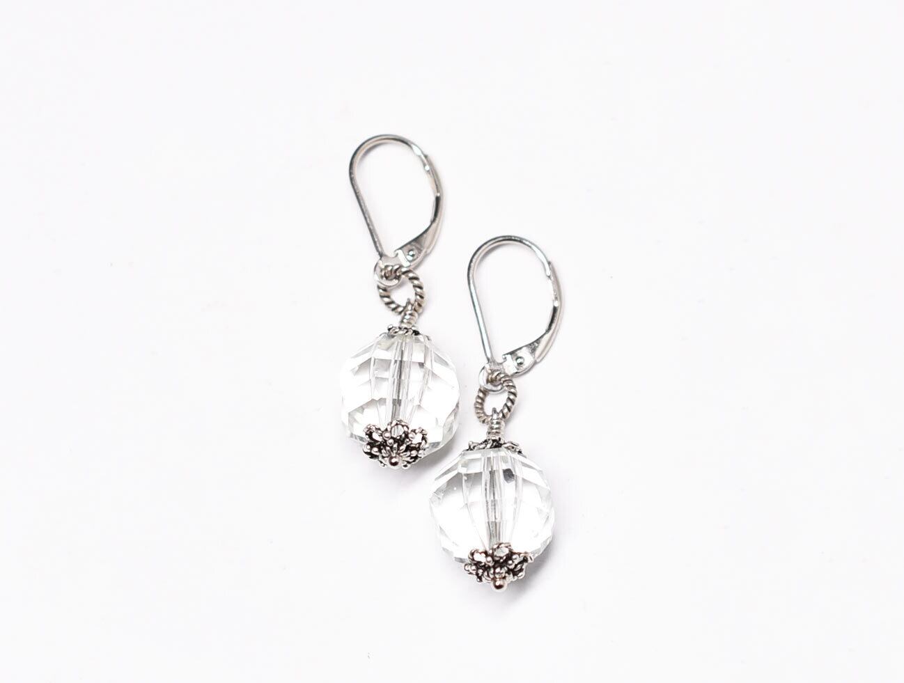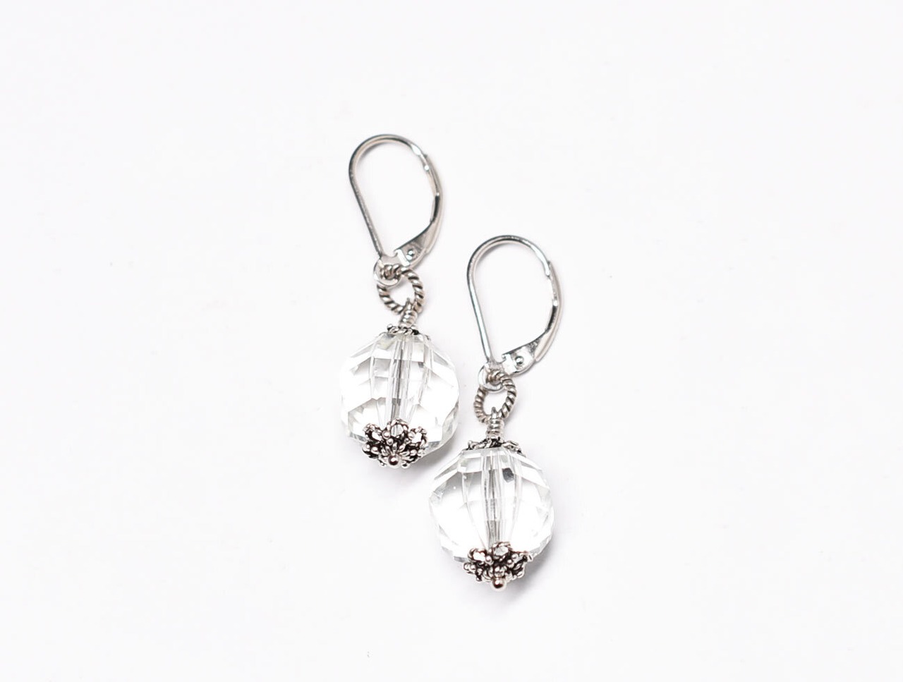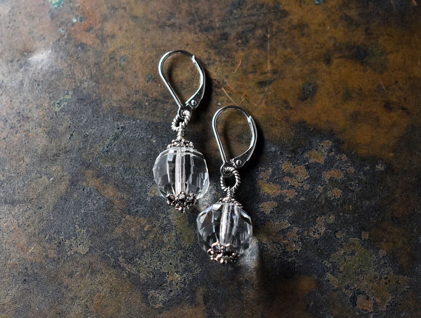 美しいカットのクリアヴィンテージチェコビーズの一粒ピアスです。