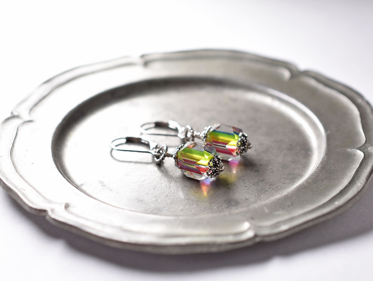 カットが美しいヴィンテージビーズを繋いだピアスです。