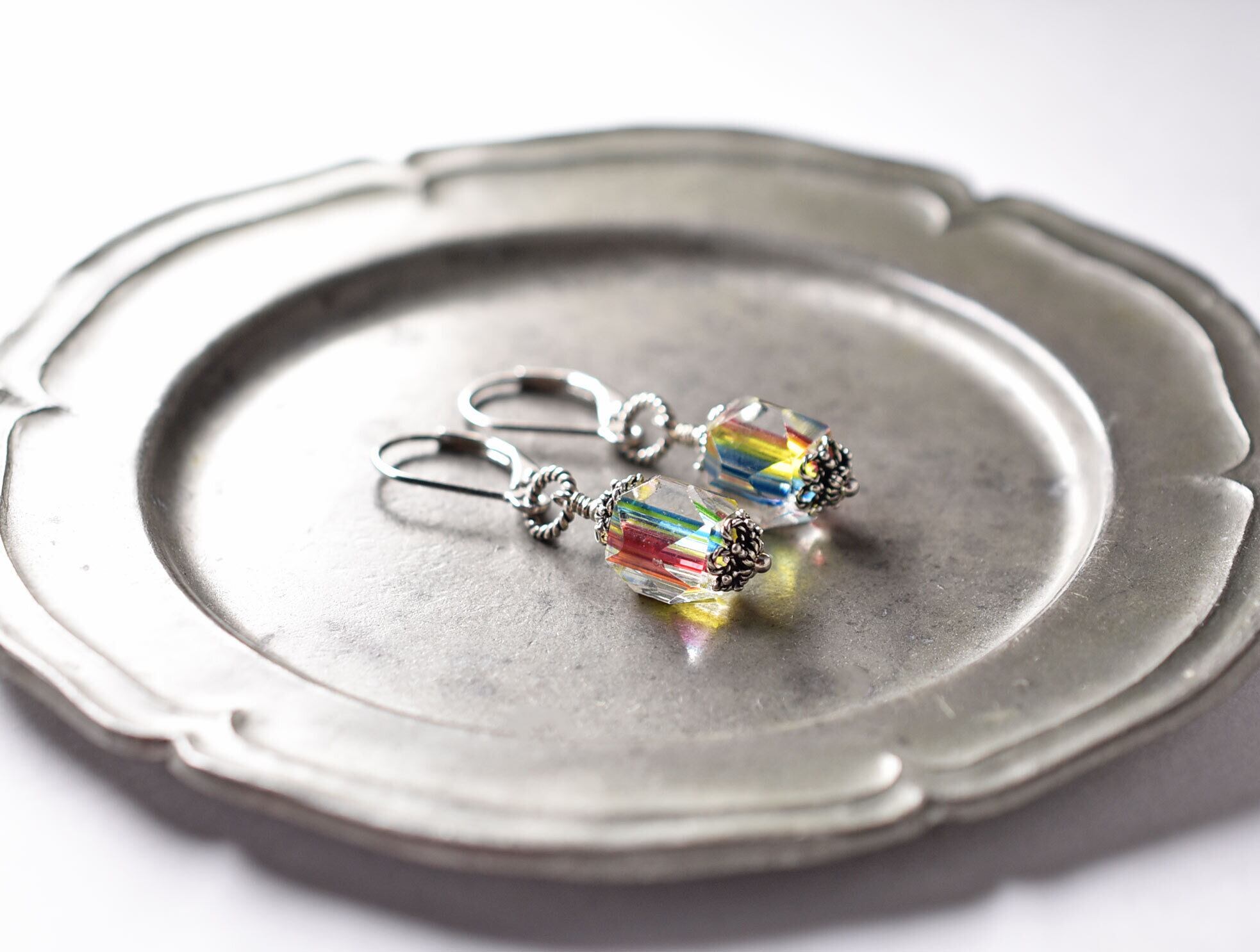 カットが美しいヴィンテージビーズを繋いだピアスです。