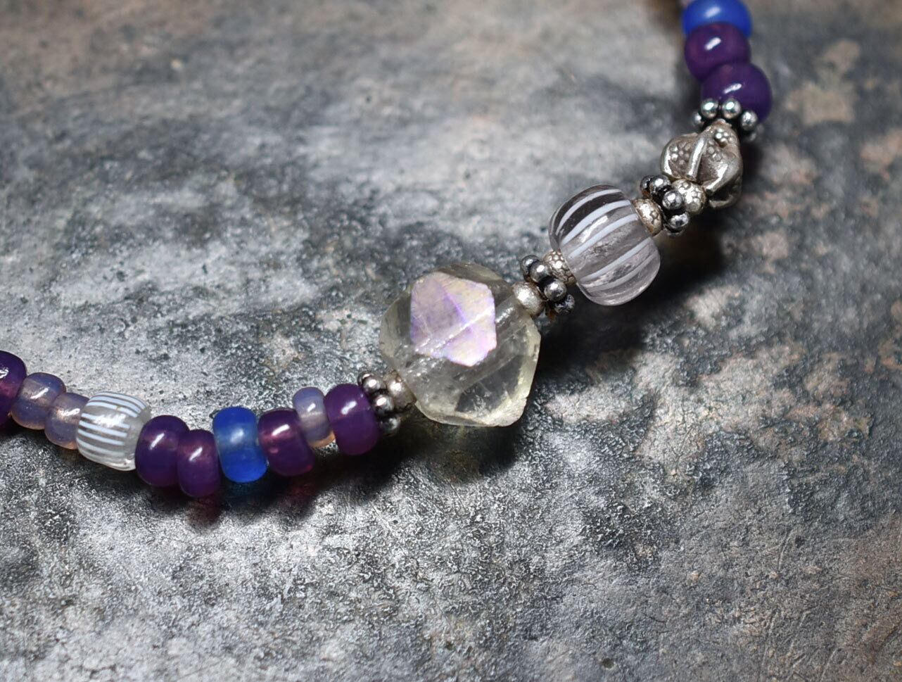 勿忘草色、桃色のビーズはヴェネチアのアンティークビーズです。