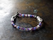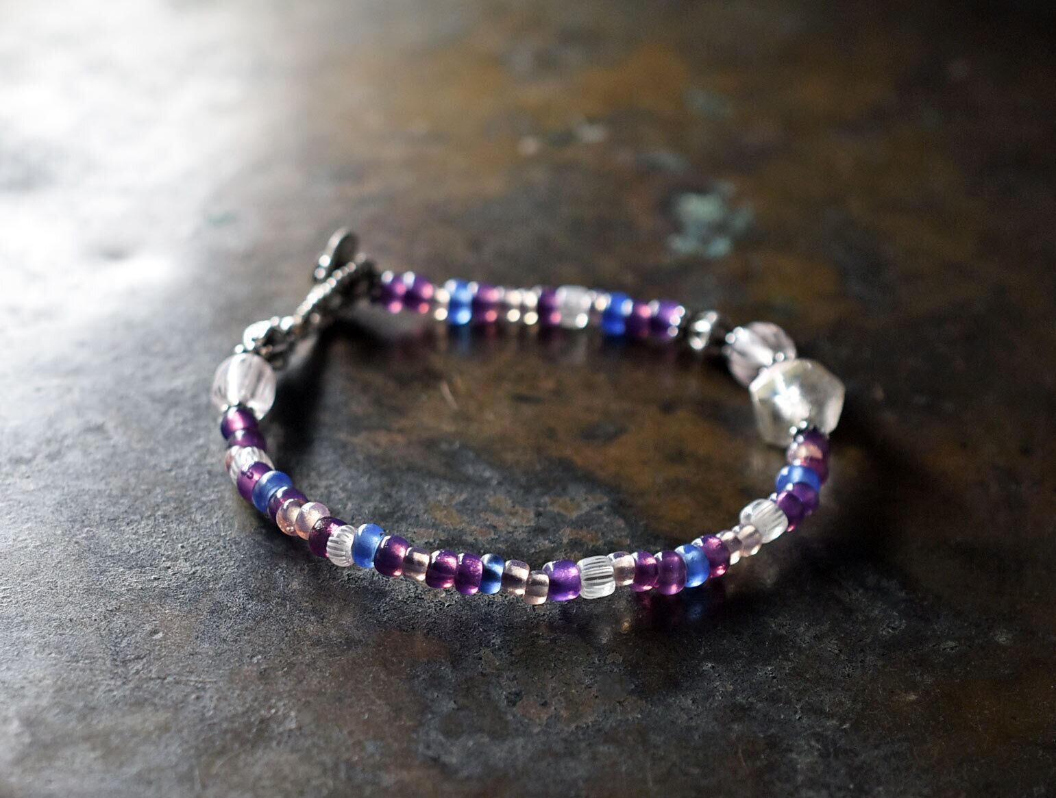ヴィンテージオーロラビーズとカレンシルバー、グーズベリー、すみれ色&勿忘草色&桃色ビーズのブレス