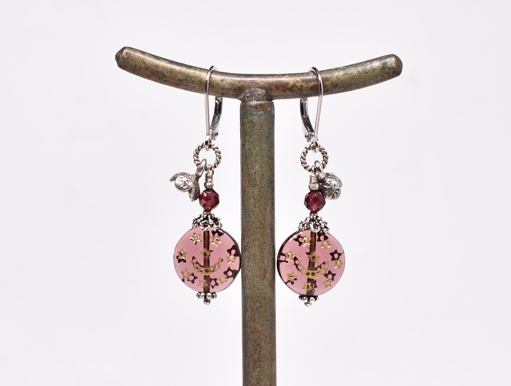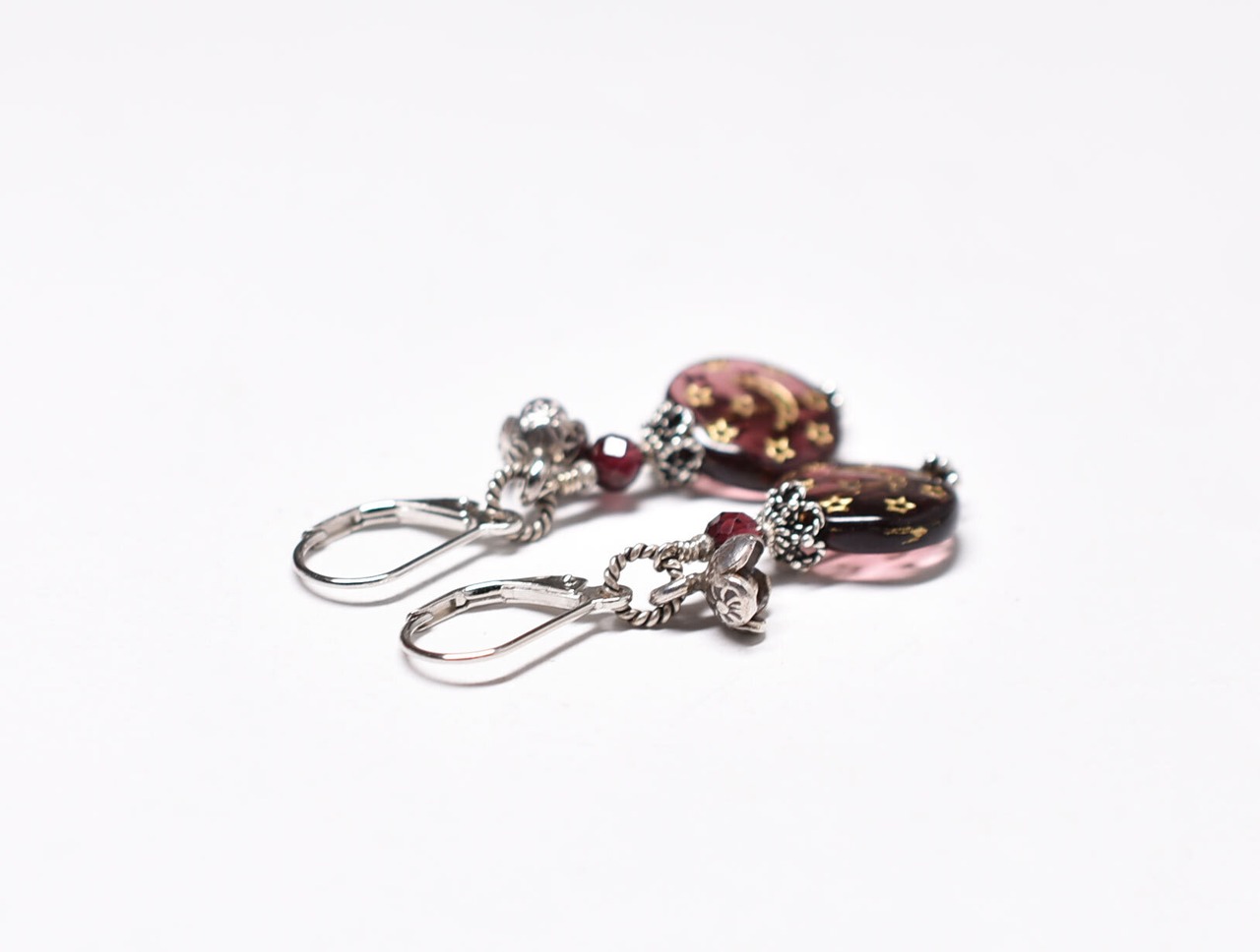 パープル聖者のビーズとガーネット、カレンシルバー小花のピアス