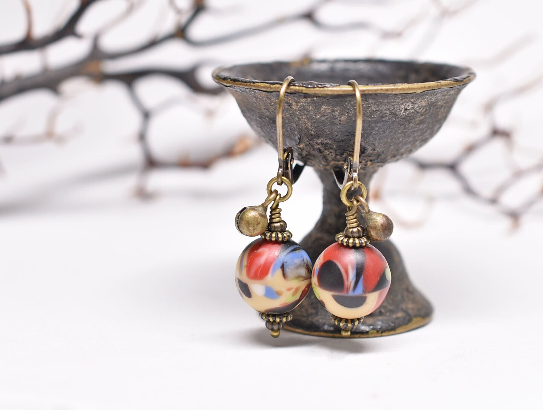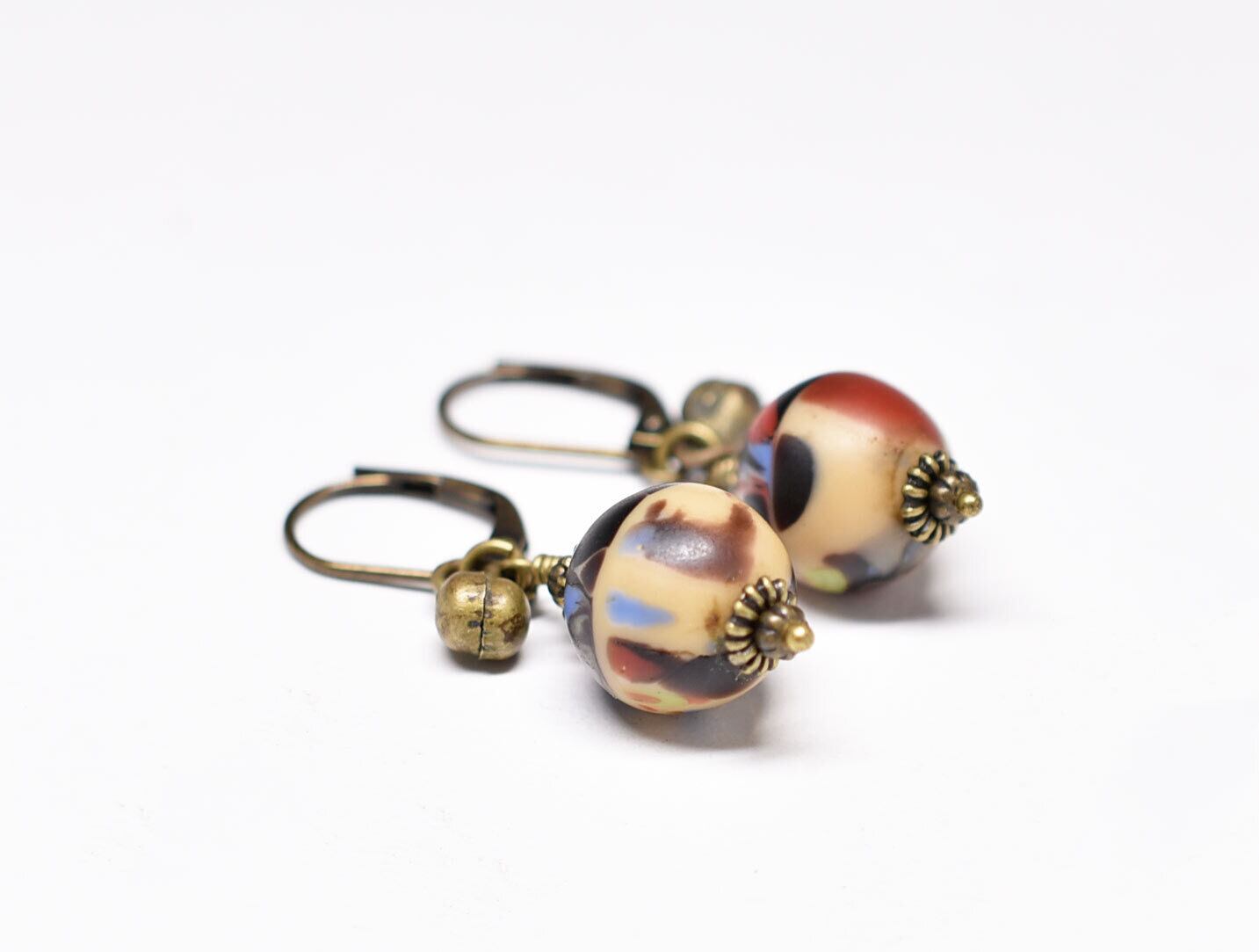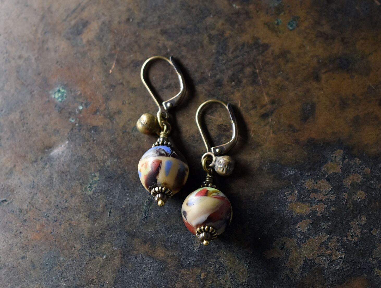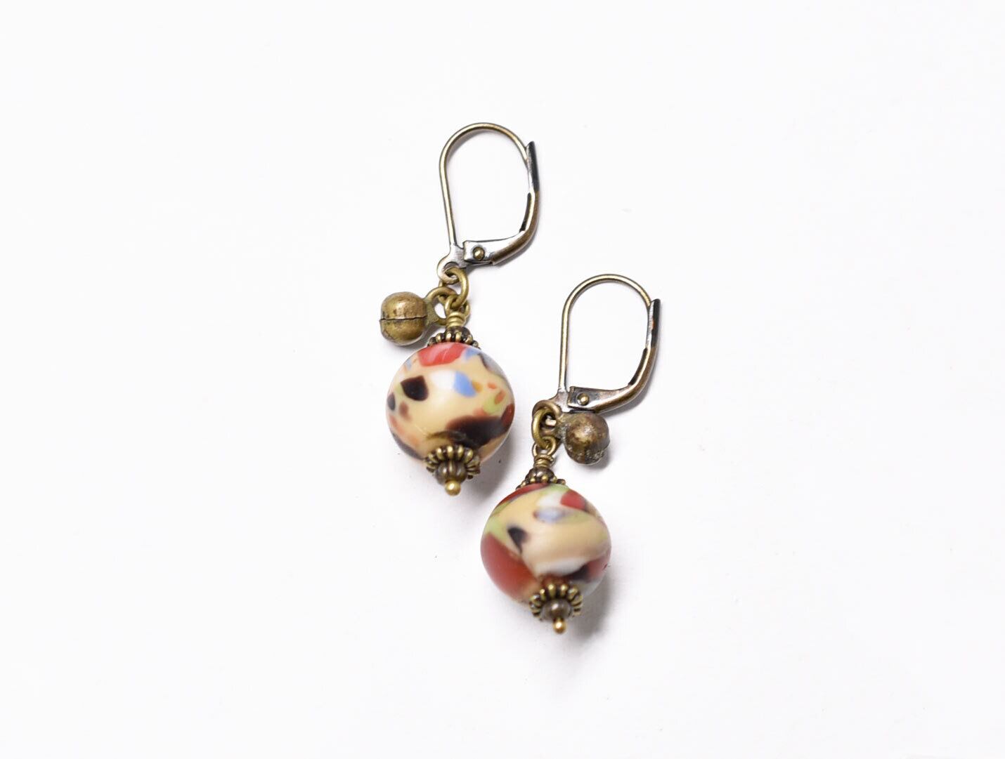 レトロな雰囲気のアンティークボヘミアビーズと民族鈴のピアスⅠ