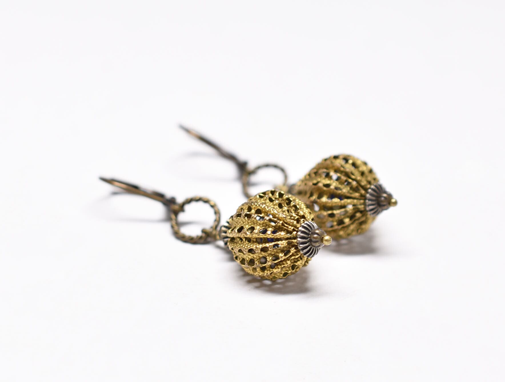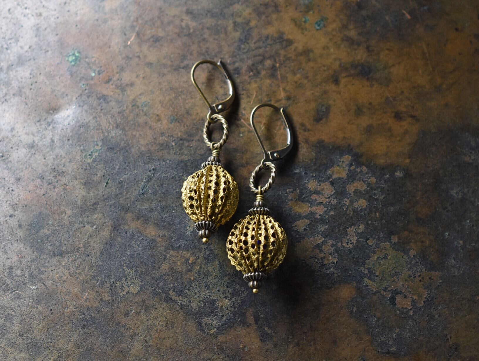 手毬のような細かな模様が入ったブラスビーズはヴェネチアのアンティークビーズを繋いでいたネックレスに含まれていたものです。