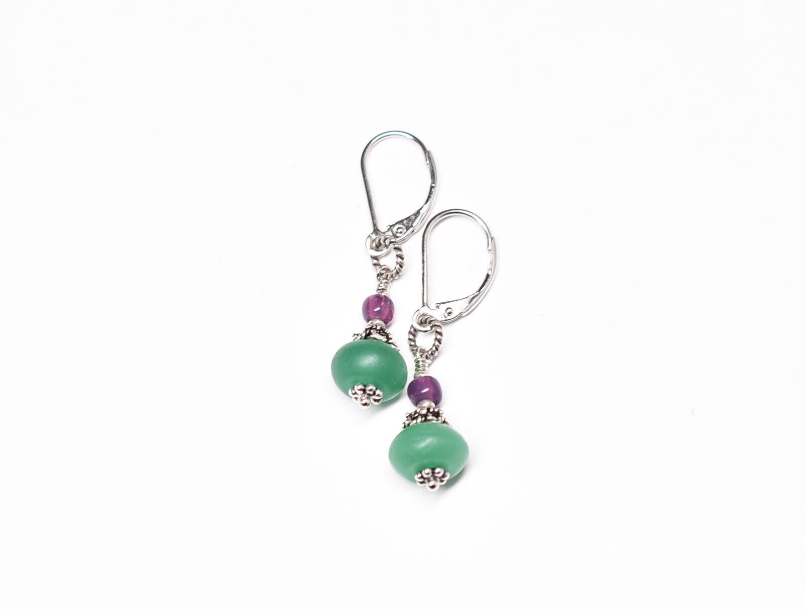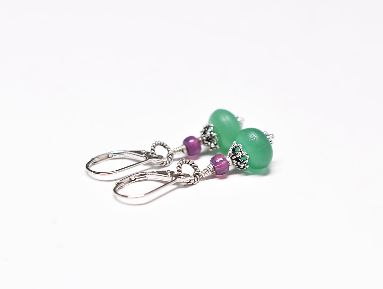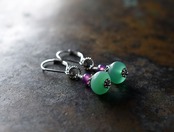 アンティークウランガラスとすみれ色フランスヴィンテージビーズを繋いだ小ぶりなピアスです。