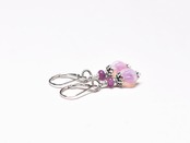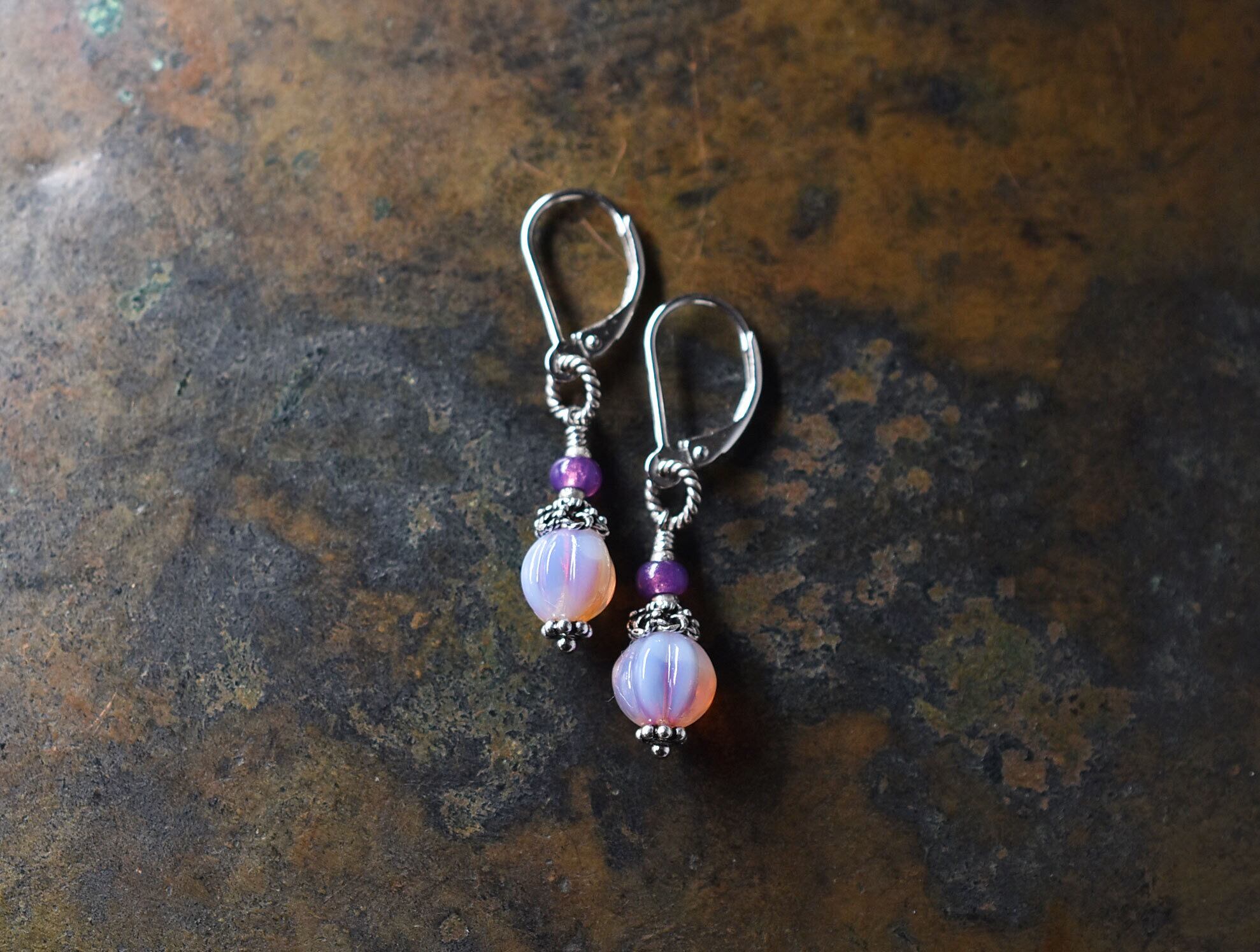 アンティークオパールガラスとすみれ色フランスヴィンテージビーズを繋いだ小さめのピアスです。
