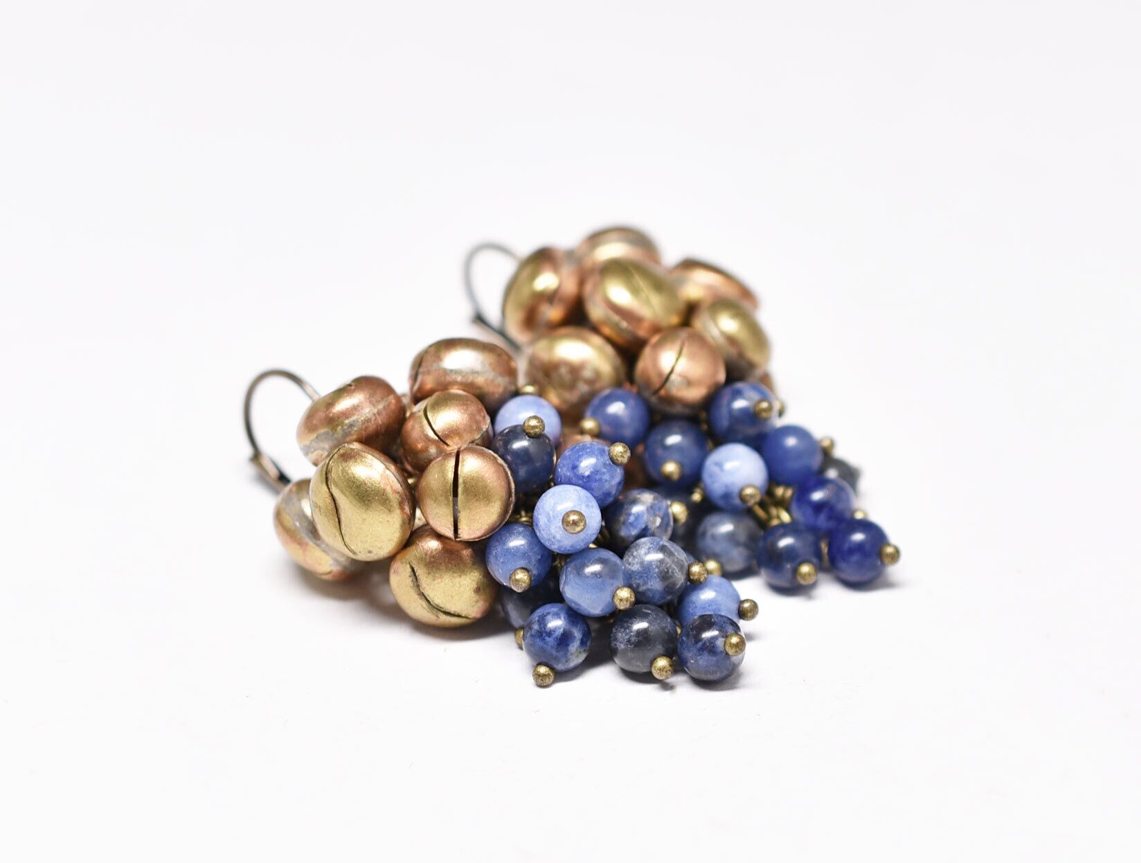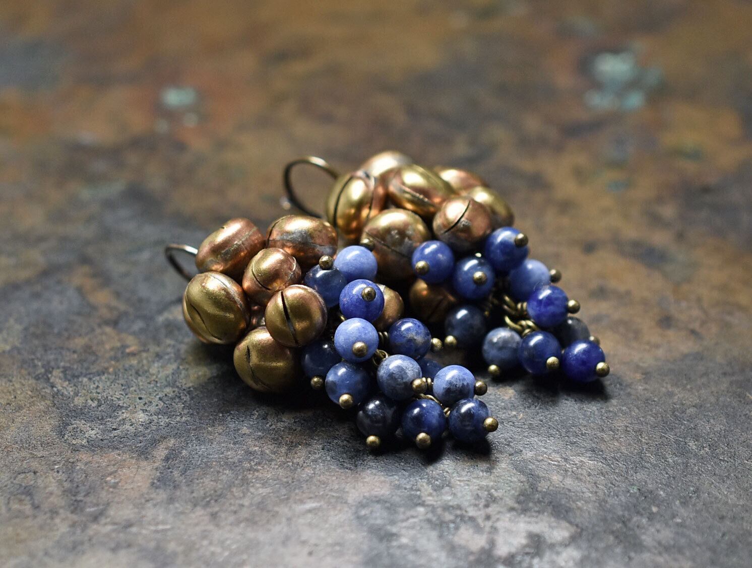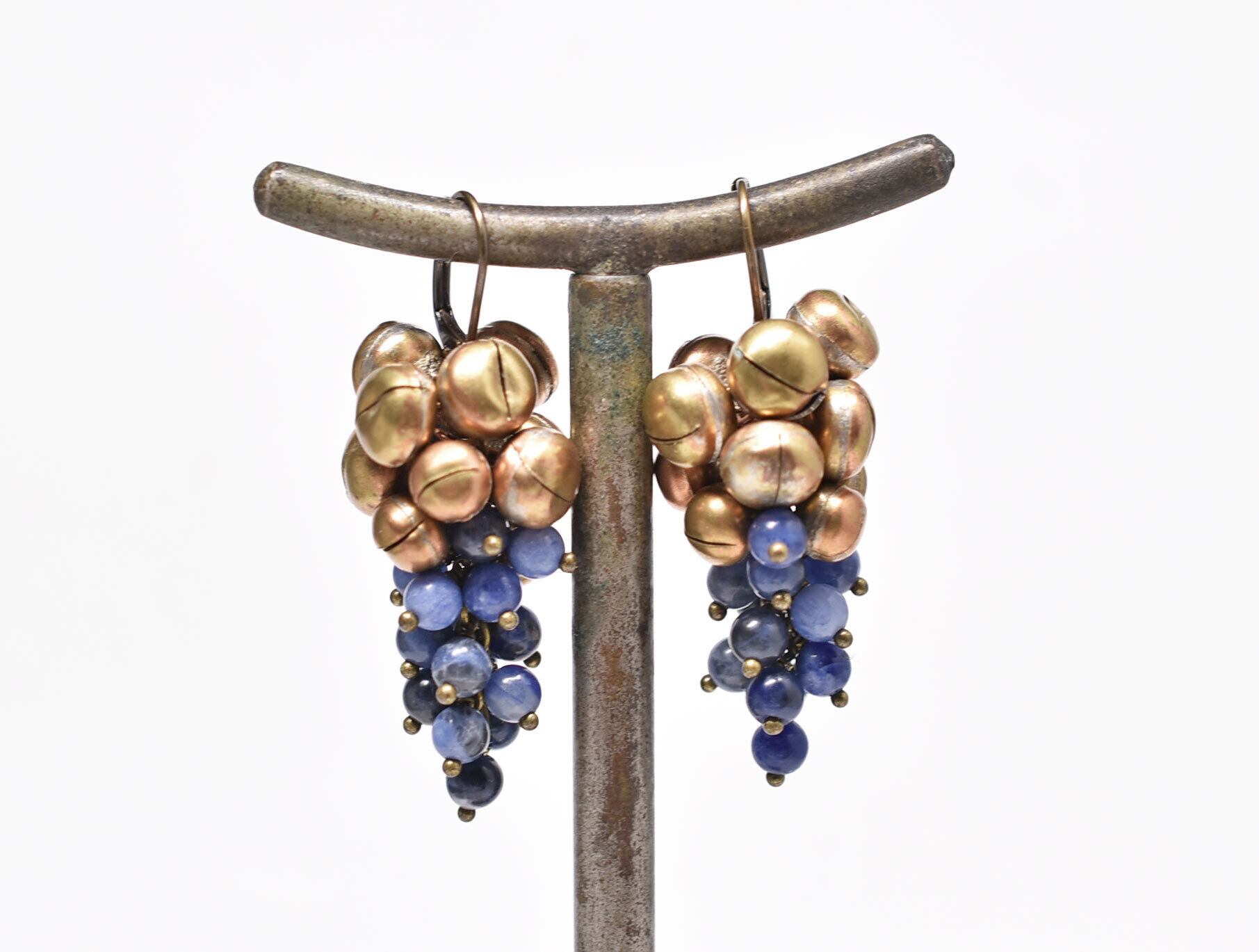 たわわな鈴とソーダライトを繋いだ実りのピアスです。