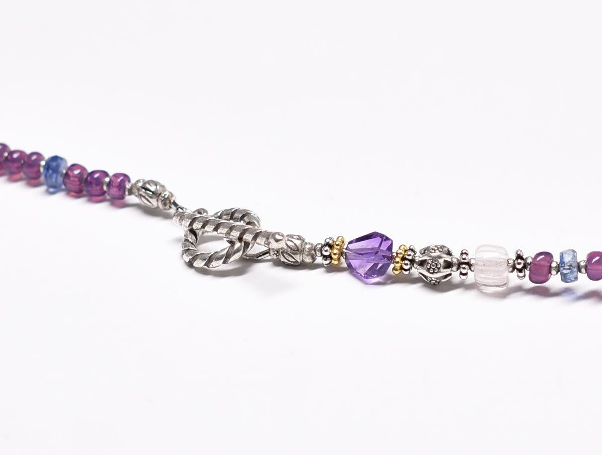 アメジストとカレンシルバー、グーズベリー、すみれ色フランスヴィンテージビーズ、カイヤナイトのネックレス