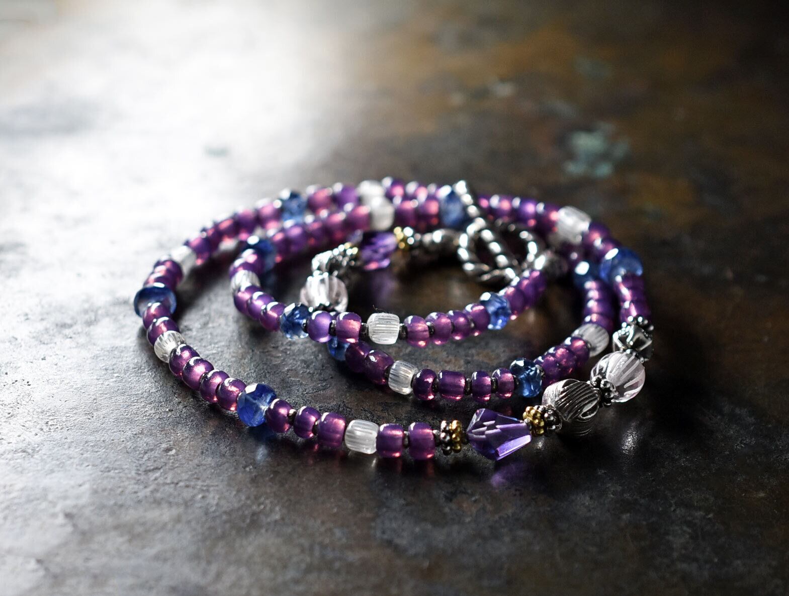 すみれ色のビーズはフランスのヴィンテージビーズです。2種類の色合いがあり、華やかで味わいもあるビーズです。