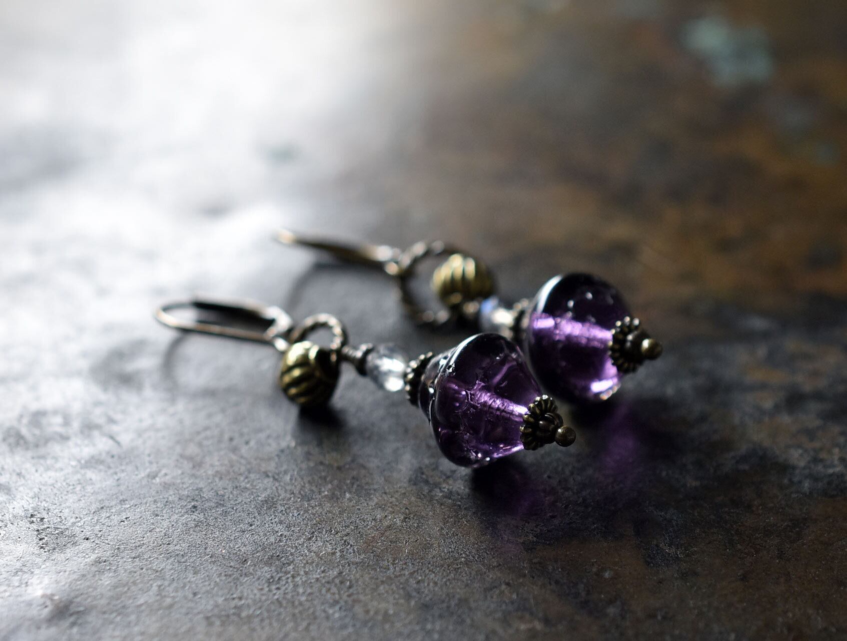 パープルドイツヴィンテージビーズとラブラドライトのピアス