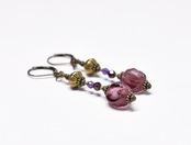 ドイツヴィンテージビーズ、ガーネットとアメジスト、蓮華ブラスを繋いだピアスです。