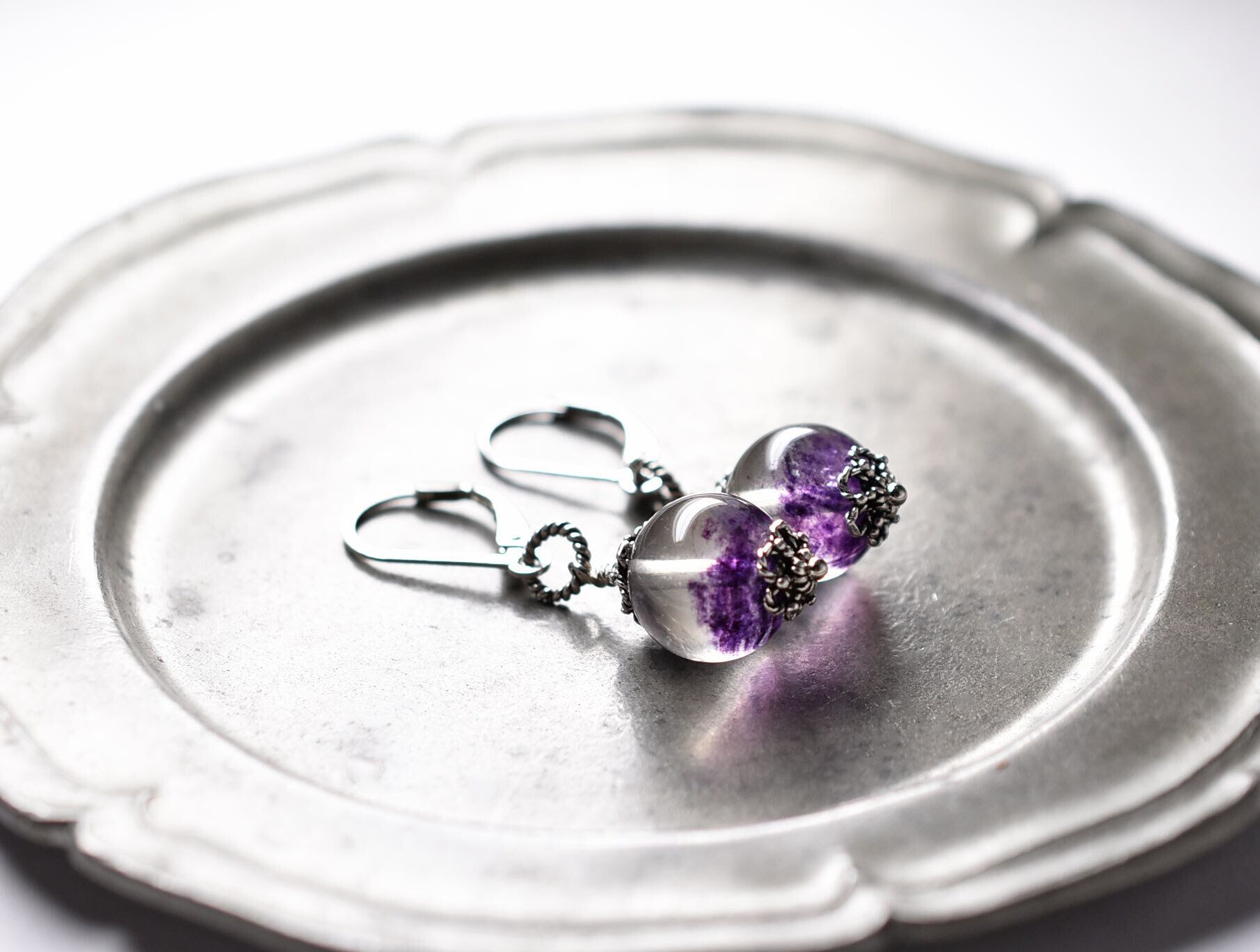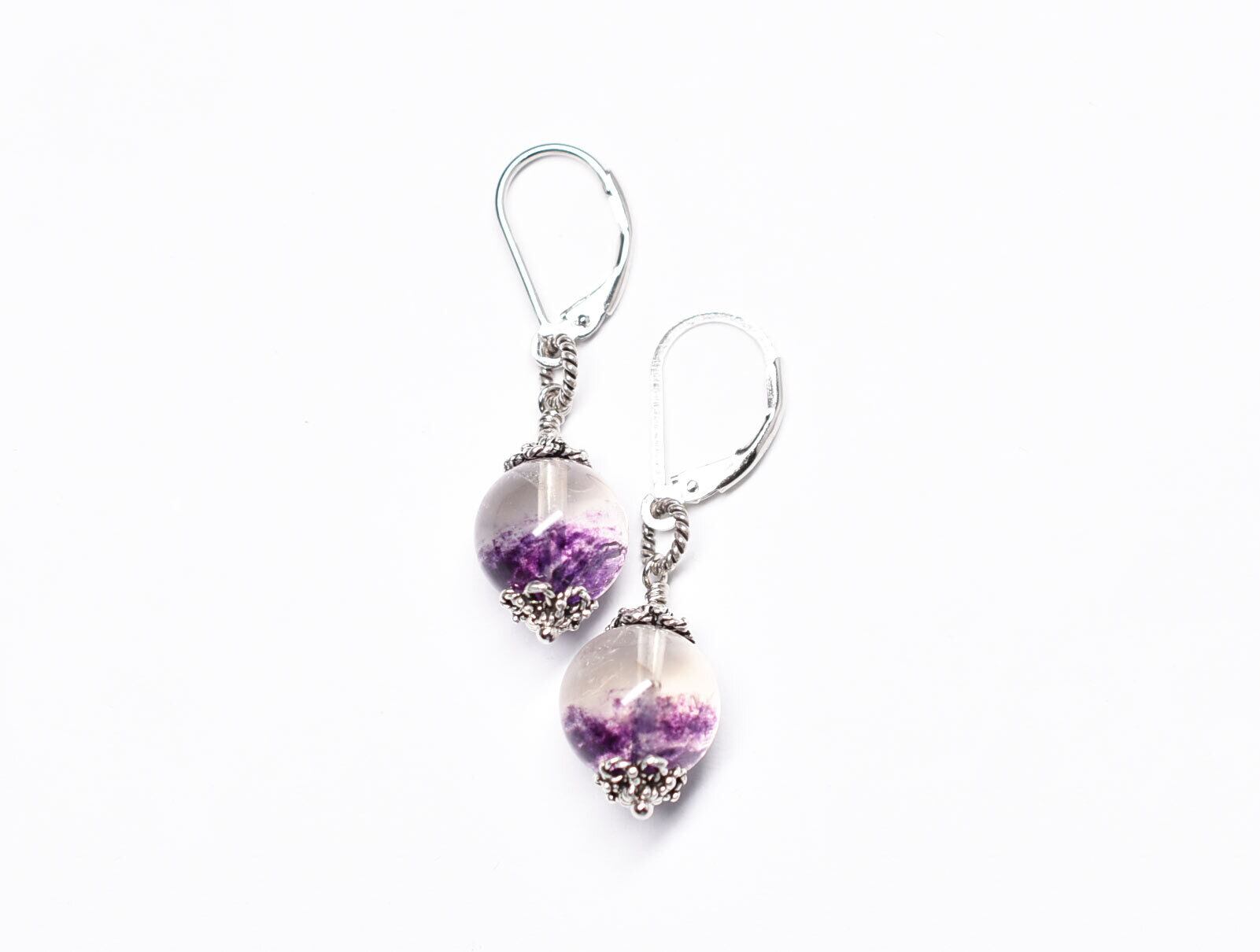 まん丸フローライトの一粒ピアス(シルバー)