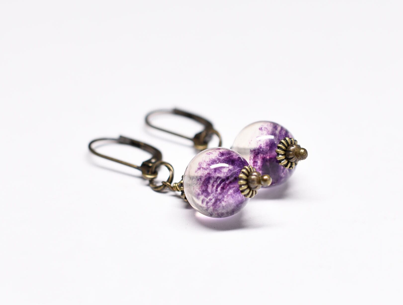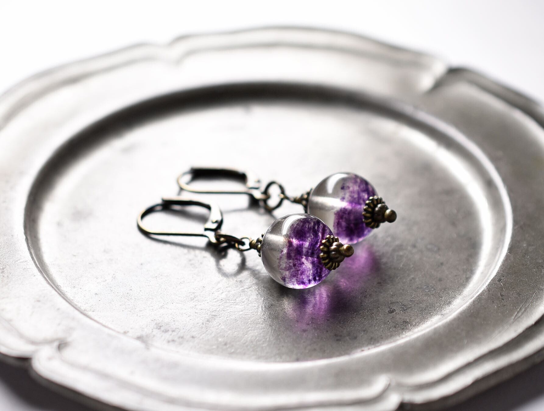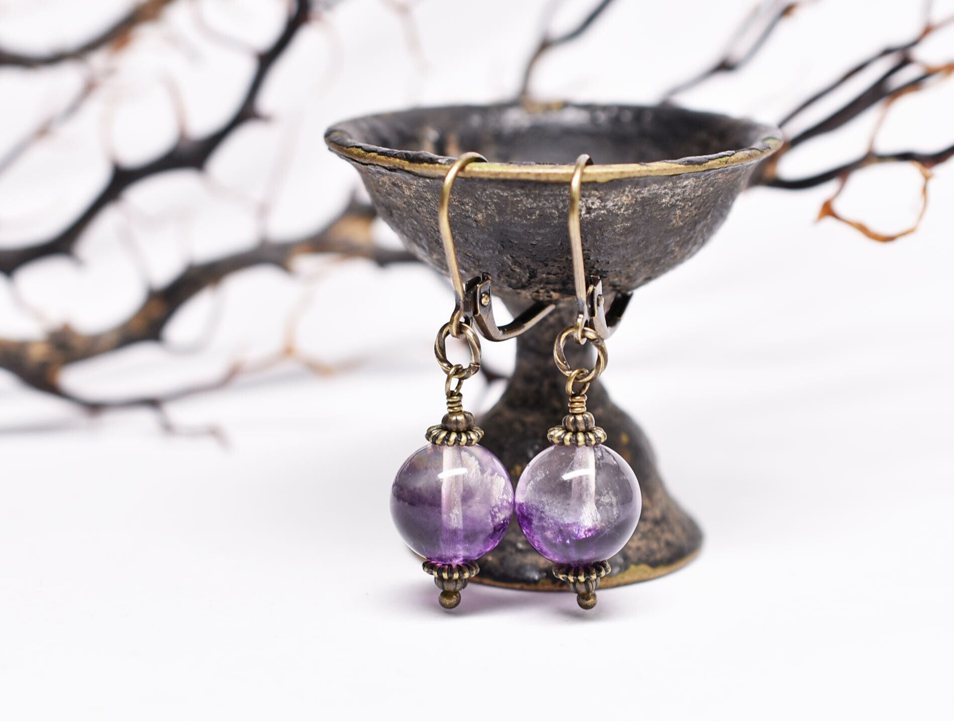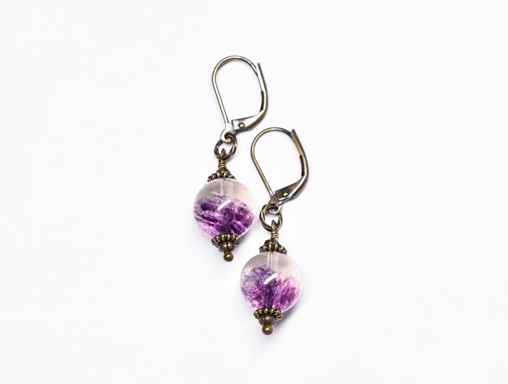 まん丸フローライトの一粒ピアス(アンティークゴールド)