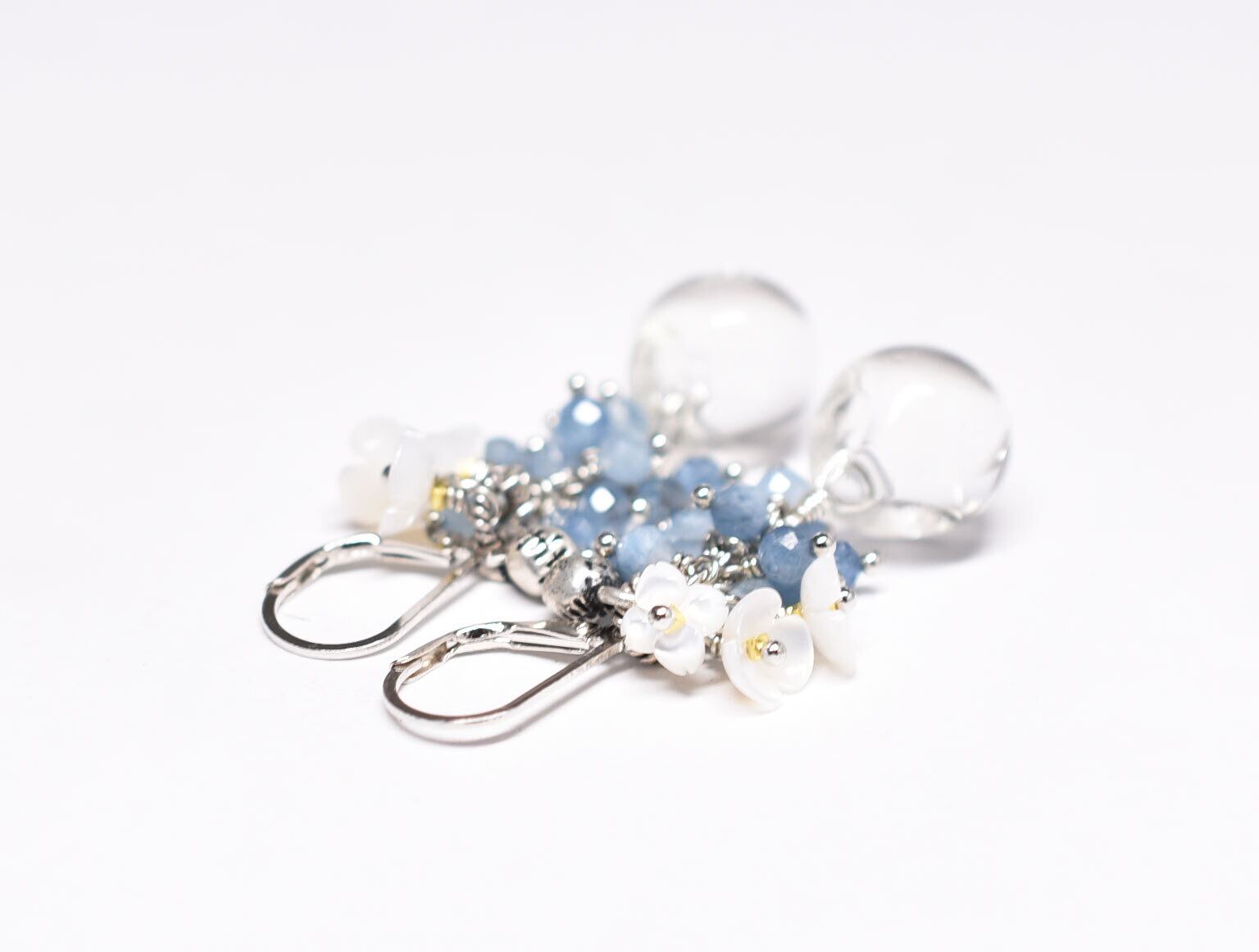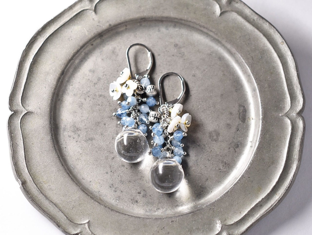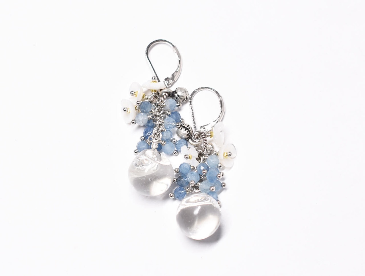 素材:ガラス、アクアマリン、白蝶貝、カレンシルバー、シルバー