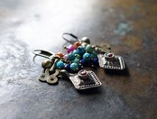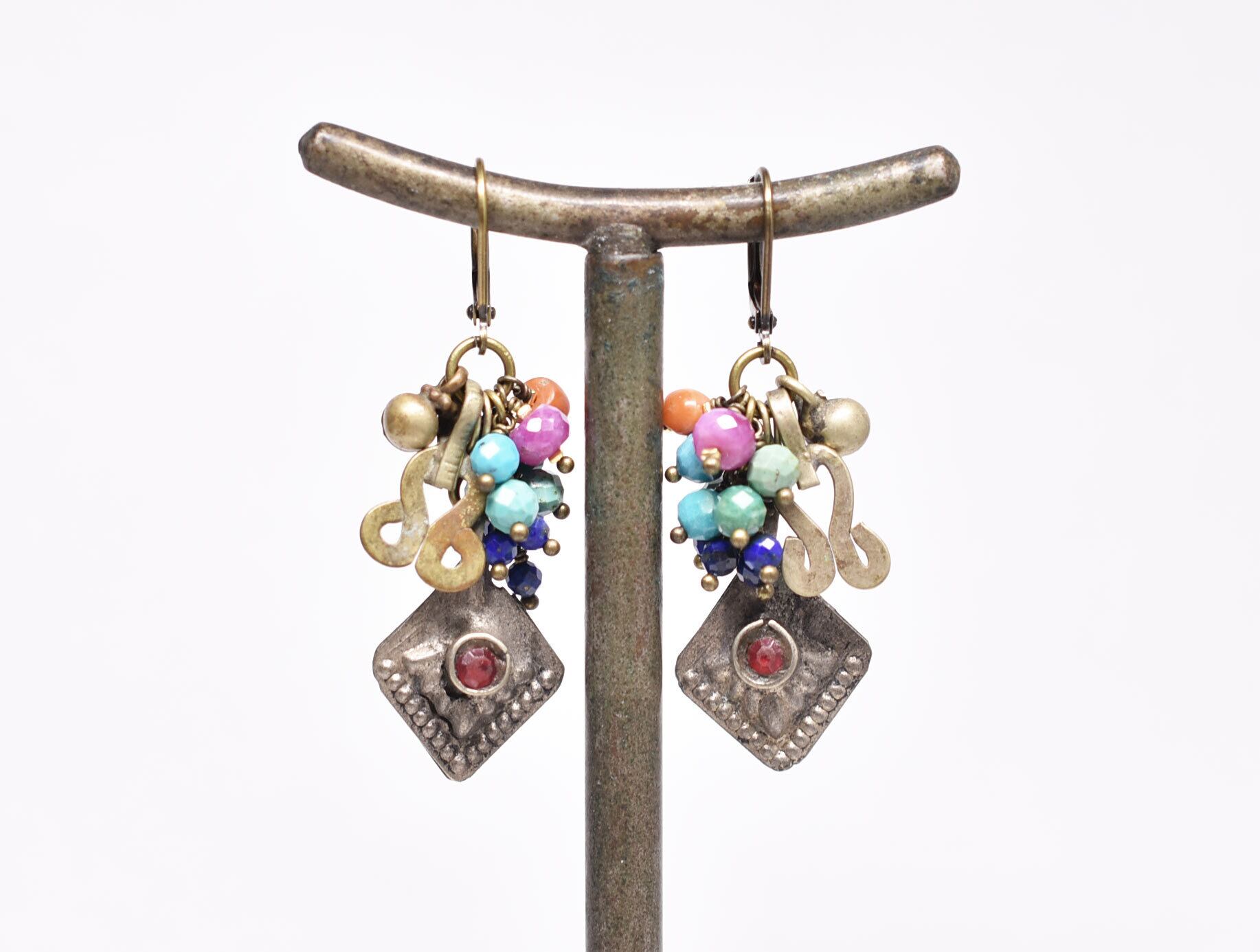 アフガニスタンメタルパーツとたわわなストーンビーズ、民族鈴のピアス
