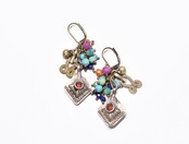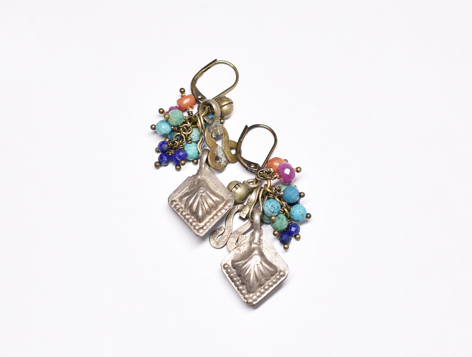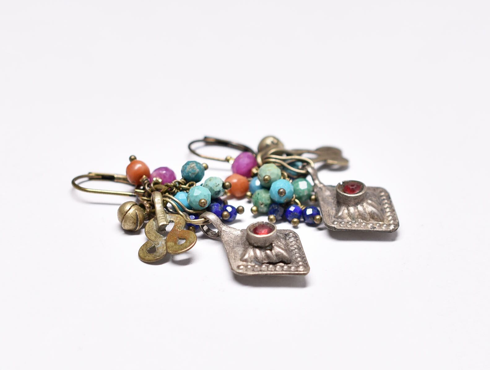 アフガニスタンメタルパーツとたわわなストーンビーズ、民族鈴を繋いだピアスです。