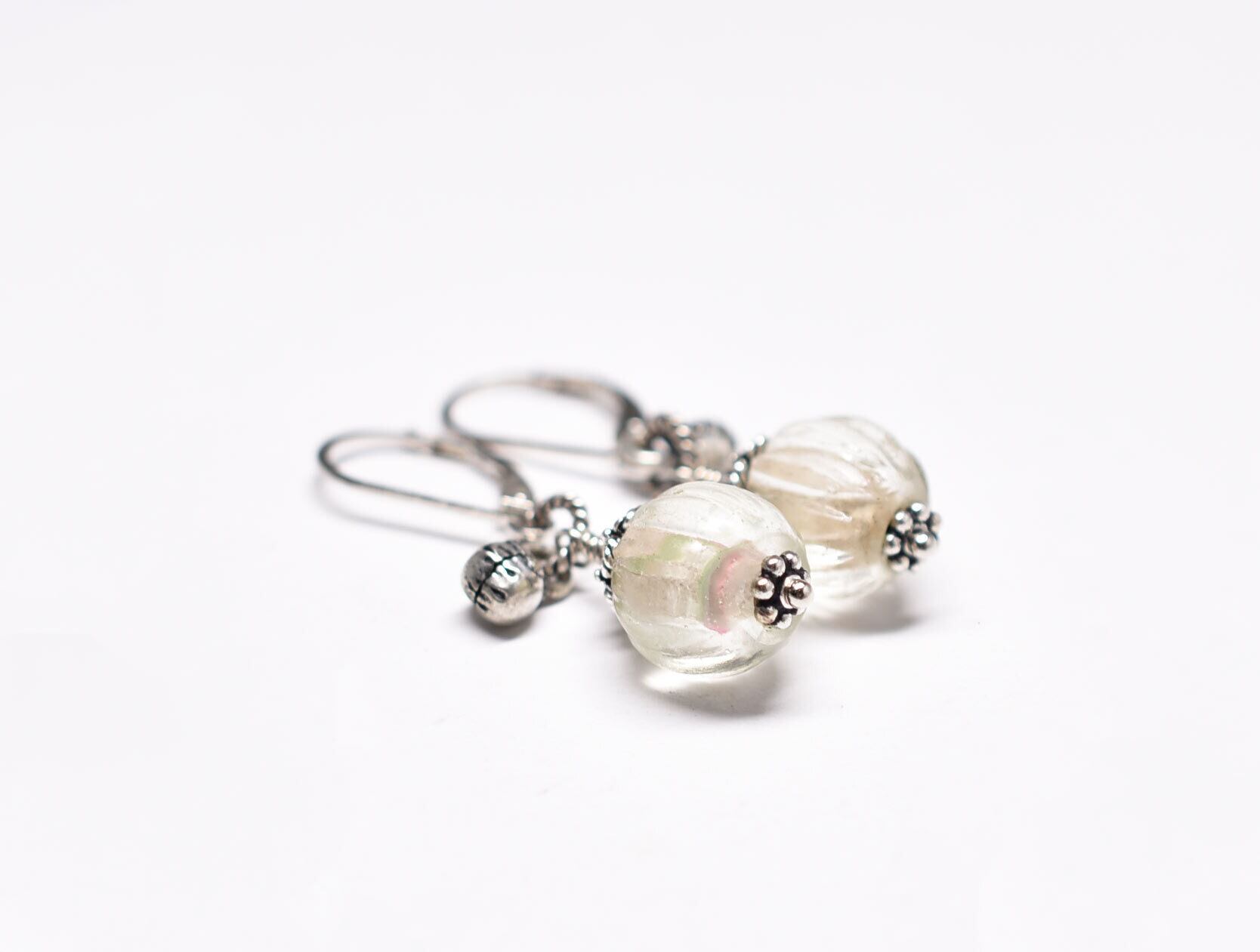oldクリア蜜柑玉とインドシルバー鈴のピアス