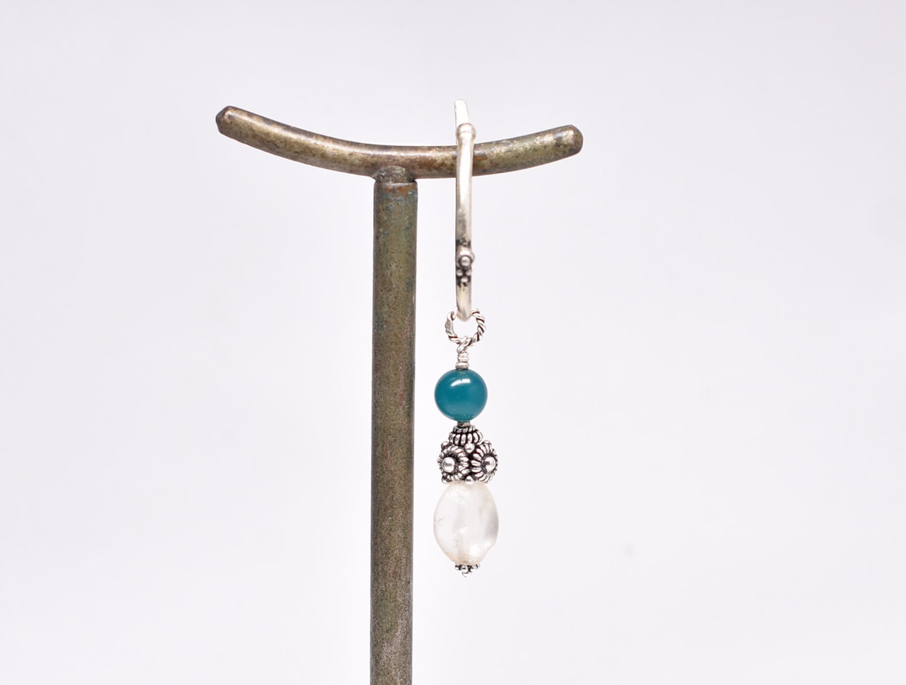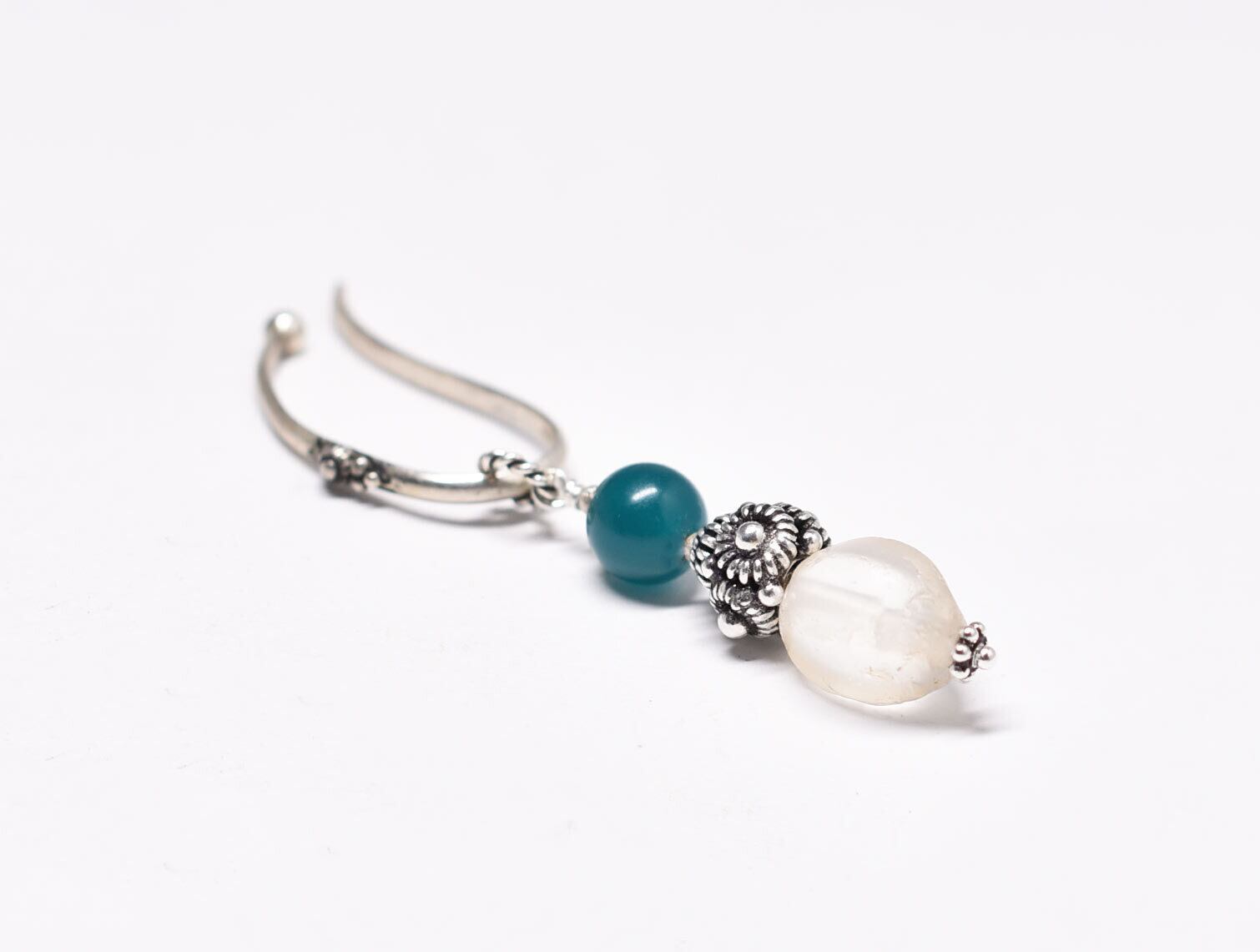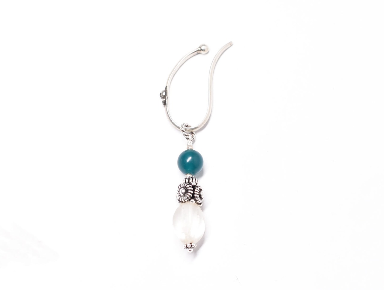 古代水晶とピーコックブルーブルーアンティークビーズの繊細細工のシルバービーズを繋いだインドシルバーイヤーカフです。