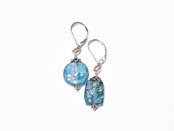 ブルーグリーン銀化ローマングラスのピアス