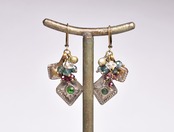 2種類のアフガニスタンメタルパーツとたわわなストーンビーズ、民族鈴のピアス