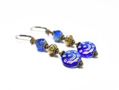 ブルー聖者のビーズとチェコヴィンテージビーズ、蓮華ブラスを繋いだピアスです。