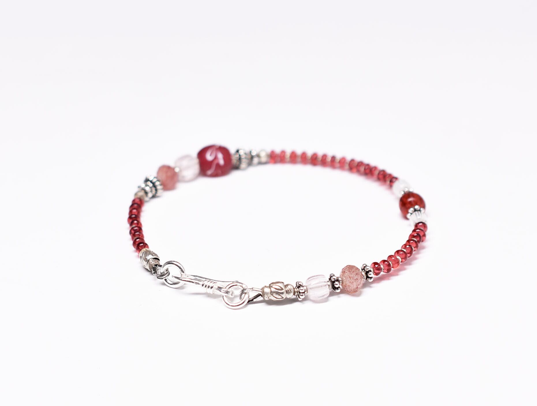 ニュアンスのある赤色が楽しめる、少し華奢なブレスです。。