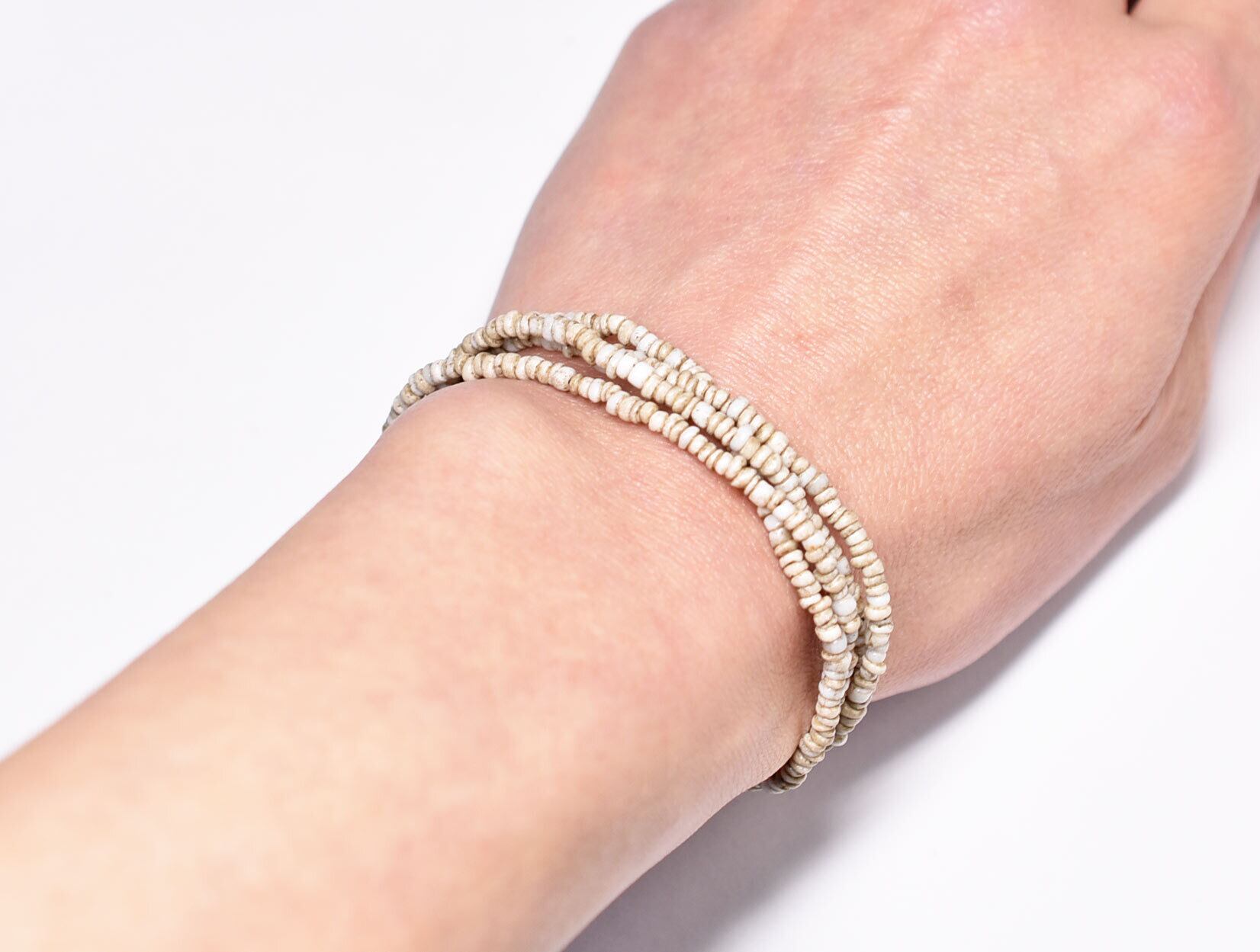 アンティークホワイトシードビーズを4連にしたブレスです。