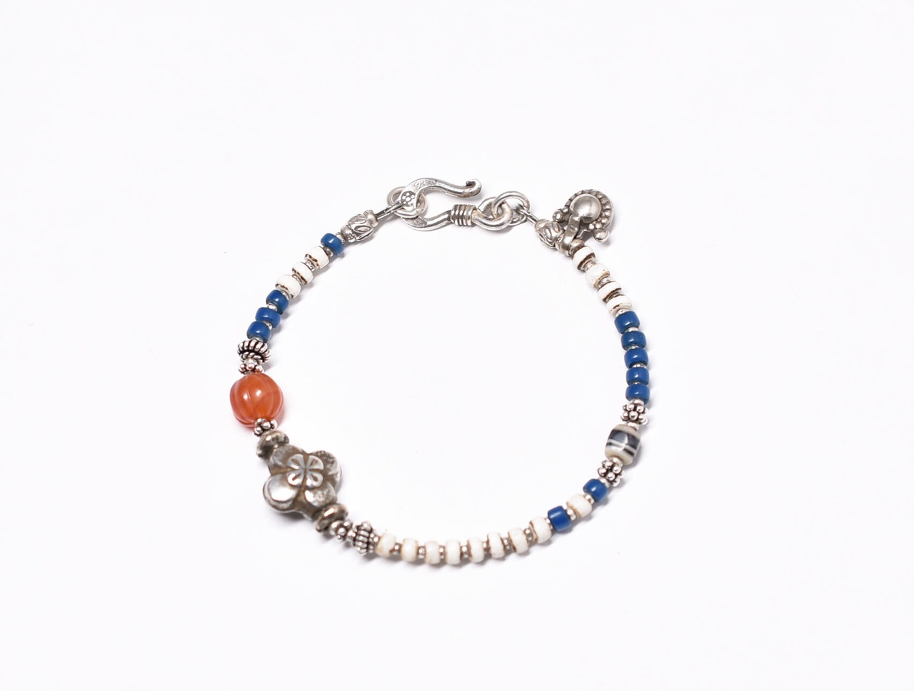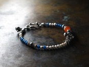 ヒマーチャルシルバー、ヴィンテージカーネリアン、古代瑪瑙、ホワイトビーズと縹色ビーズを繋いだブレスです。