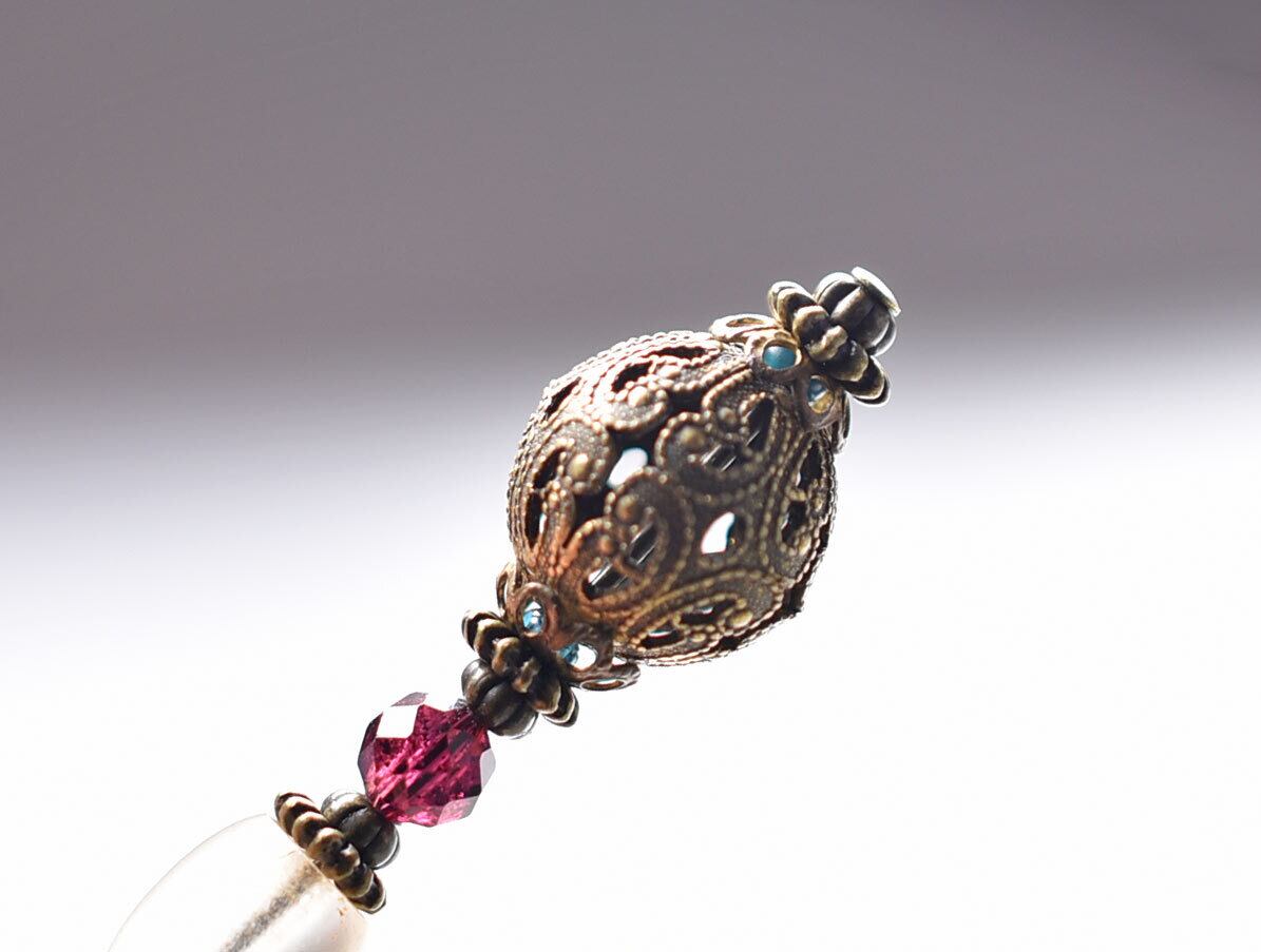 繊細な透かし模様のメタルパーツはヴィンテージのヨーロッパビーズです。