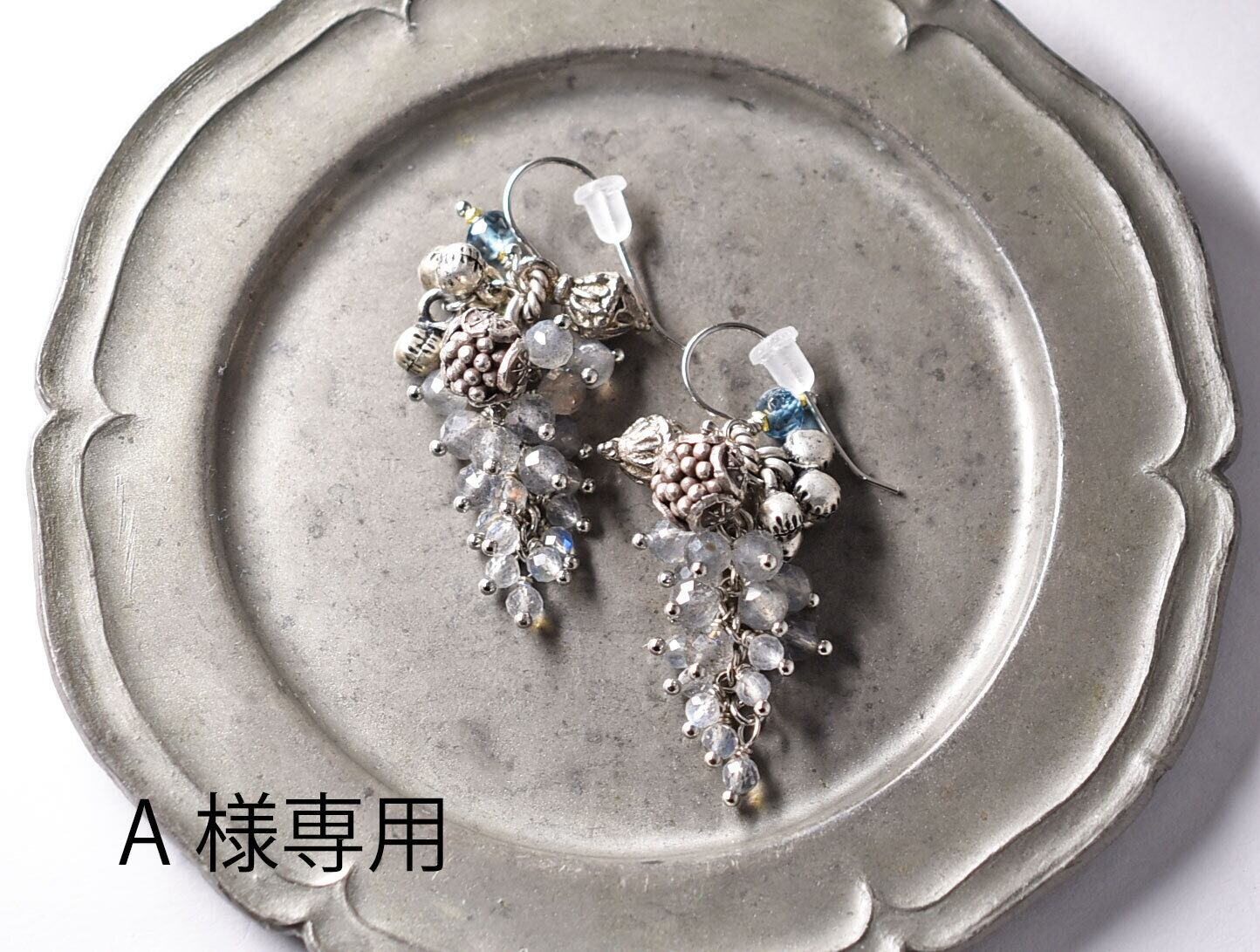 「A様専用」カレンシルバーの蕾、インドピューター、ロンドンブルートパーズ、たわわなラブラドライト、インドシルバー鈴のピアス