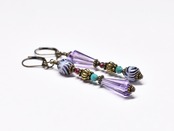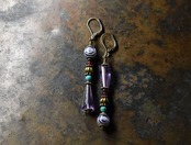 パープル&ゼブラ柄ヴィンテージビーズと手毬ブラス、ターコイズとガーネットのアンシメトリーピアス