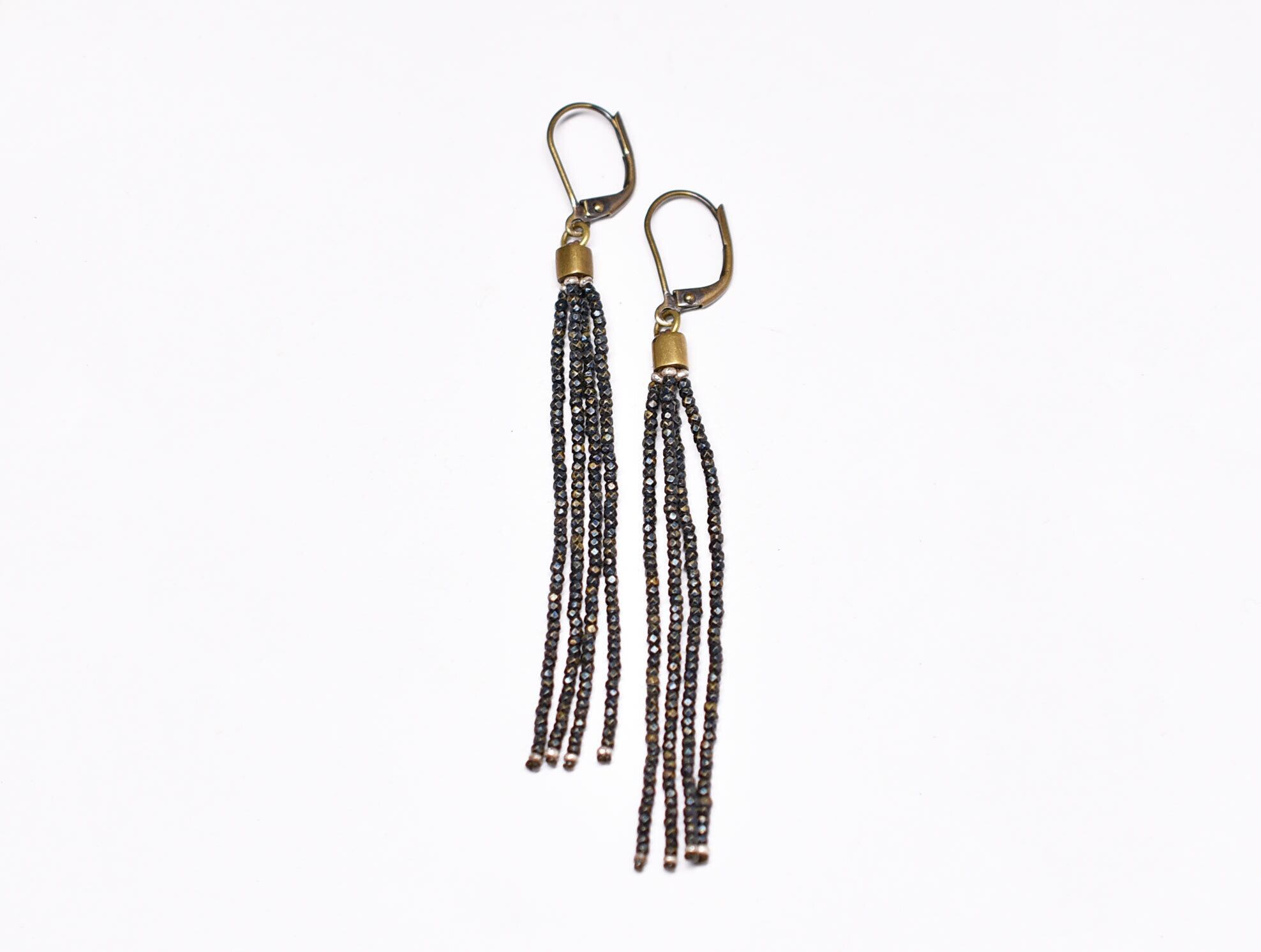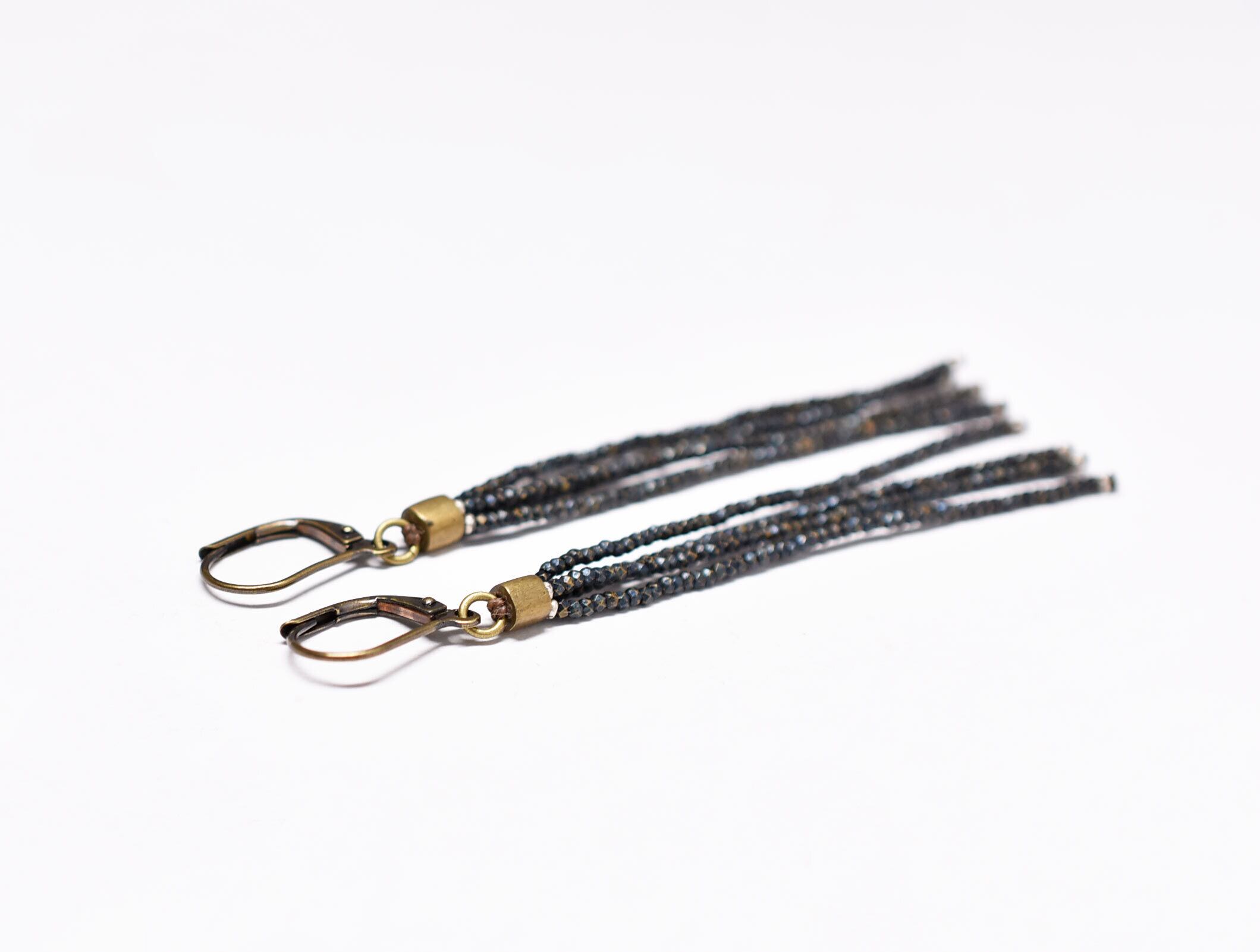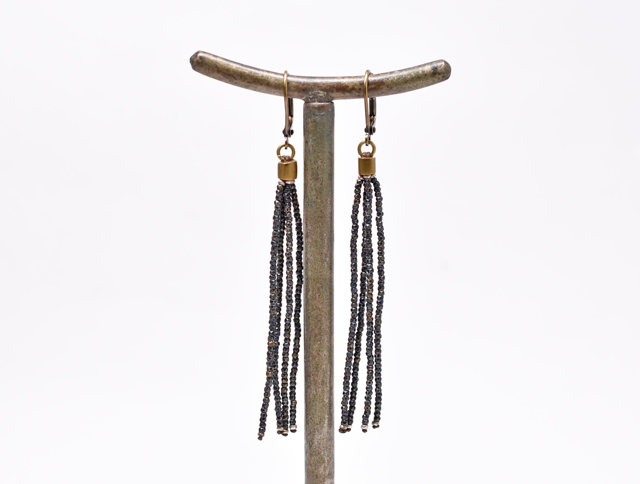 フランスアンティークカットメタルビーズの4連ピアス(ブラック)
