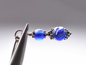 ジャーマンシルバーの飾りの上下にはブルーのアンティークビーズを忍ばせています。こちらはインドパシフィックビーズです。