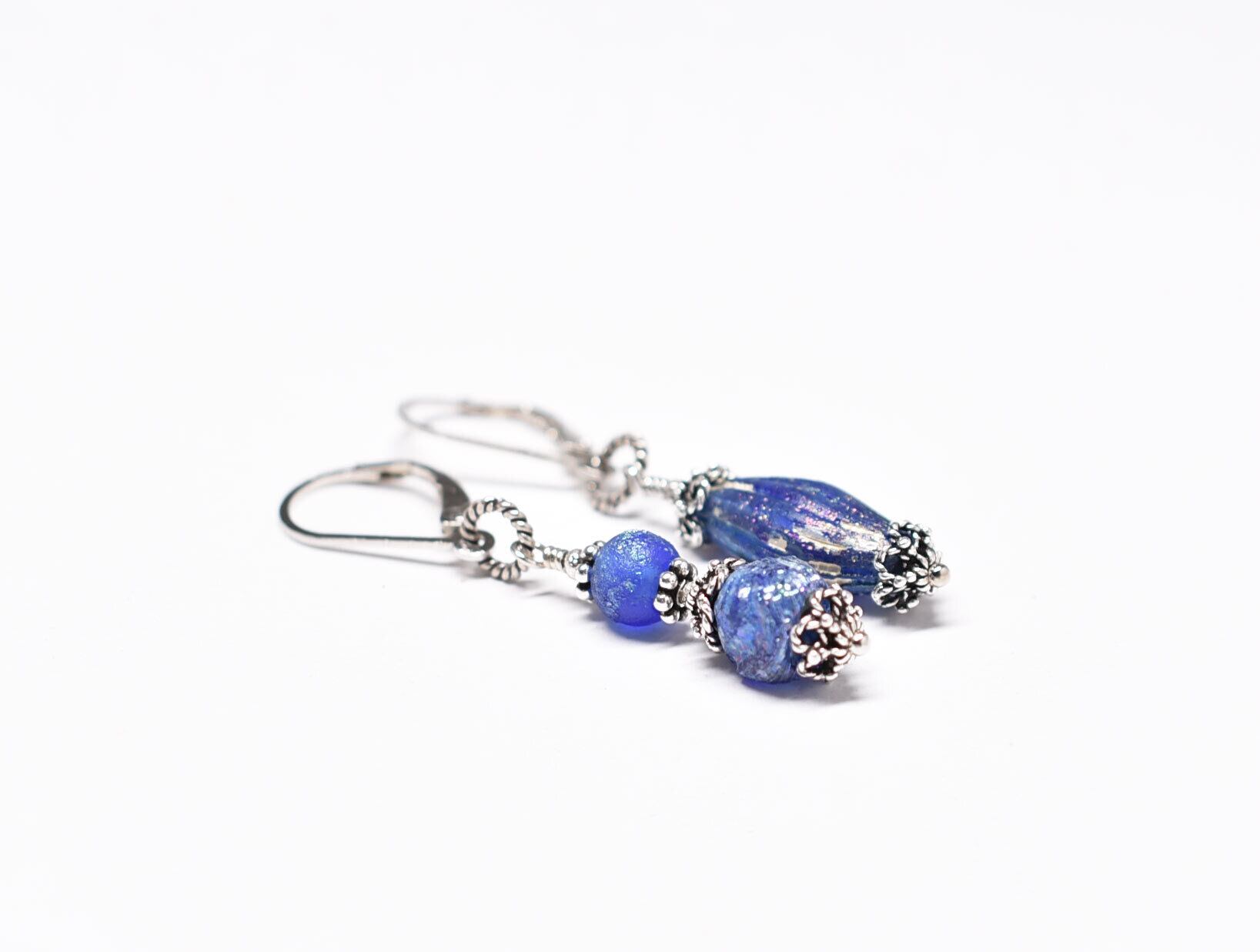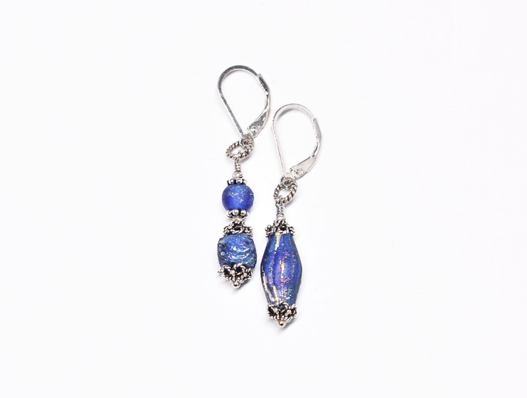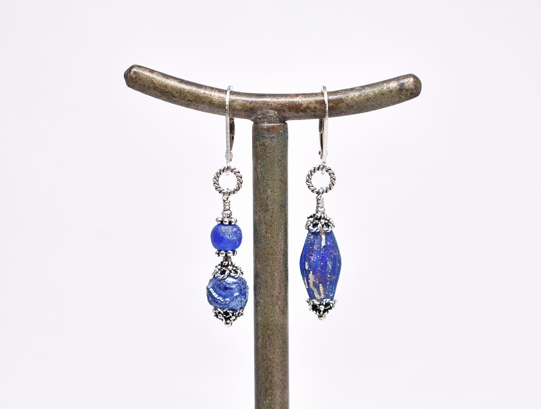ブルーのビーズはローマングラスビーズです。