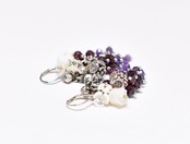 カレンシルバーの蕾、白蝶貝のお花、たわわなガーネット&アメジスト、インドシルバー鈴を繋いだピアスです。