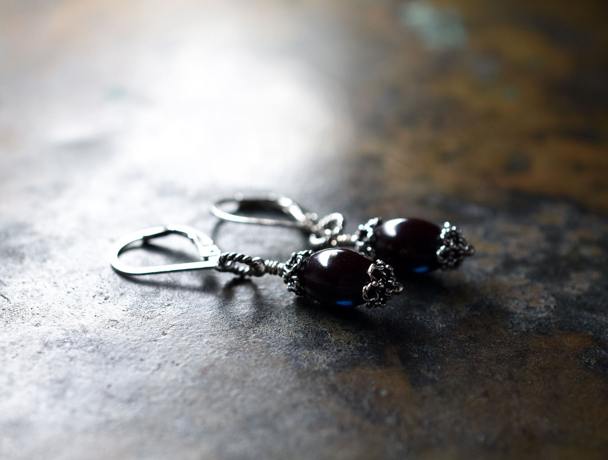 とても珍しく希少なベークライトサフィレットを繋いだ小さなピアスです。