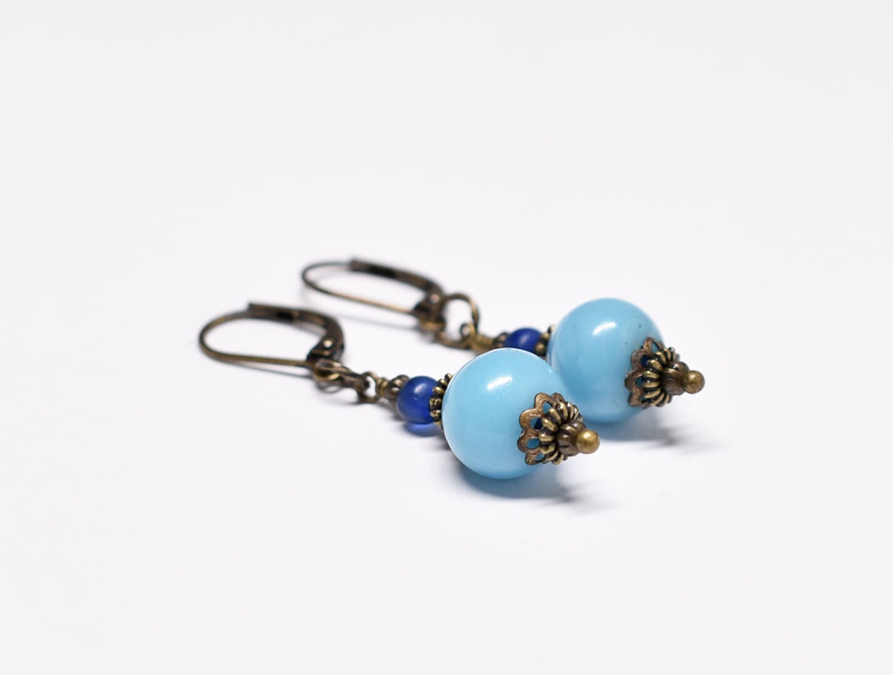 まったり空色ヴィンテージビーズとブルーアンティークビーズを繋いだピアスです。